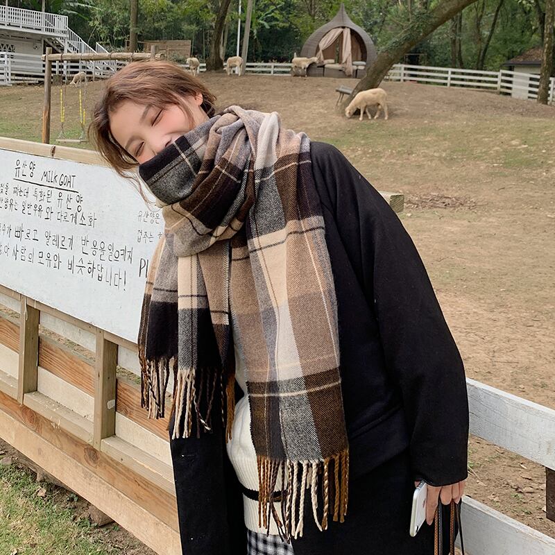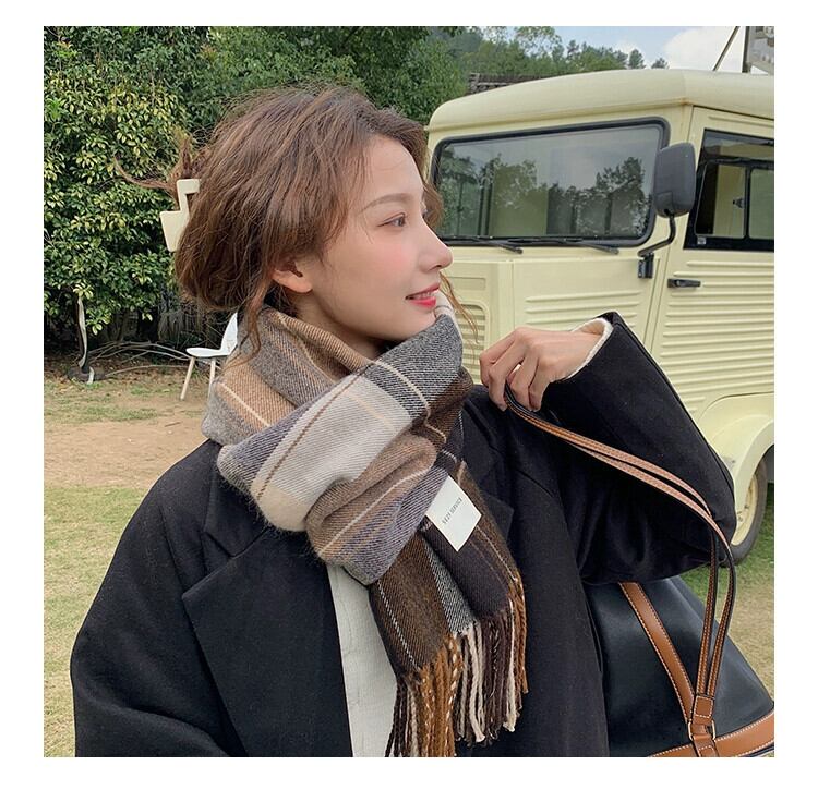 格子縞のスカーフの女性の冬バージョンの潮流オールマッチ英国スタイル厚く暖かい秋と冬の学生の兼用スカーフ オータム 秋物 ウィンター 冬物 15dd76021391939