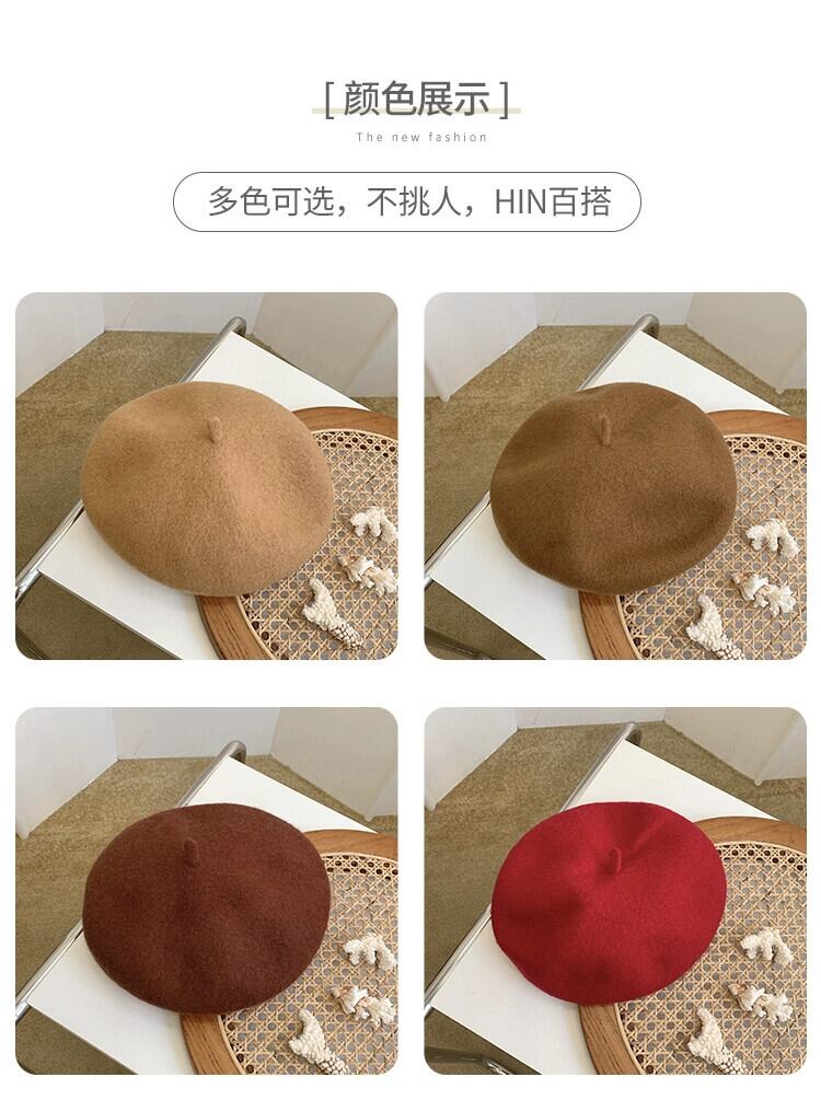 ウールベレー帽女性秋と冬 ins バージョン ese かわいい英国レトロ画家ベレー帽潮冬 帽子 大人ガーリー スウィート キュート カジュアル オータム 秋物 ウィンター 冬物 ベレット ヘアアクセサリー 15dd7703750984
