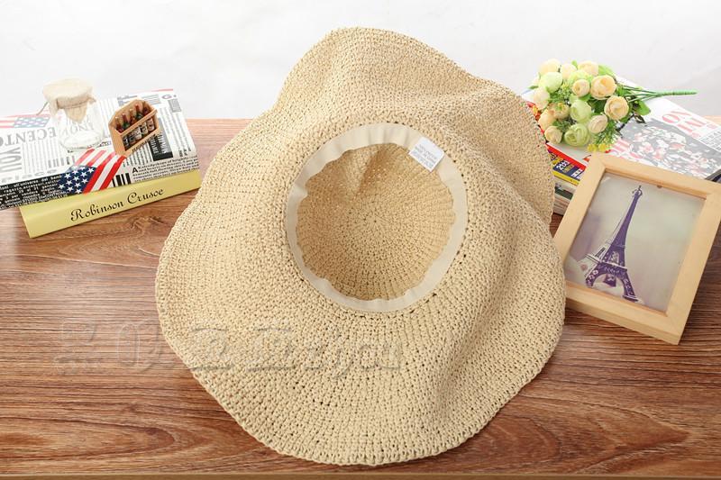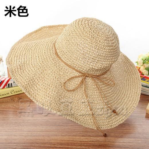 同じ手織りの休日の海辺のビーチハット、折りたたみ式カーリーエッジ大きなつばの麦わら帽子、日よけ帽子、女性と同じネットレッド 15dd46530859949