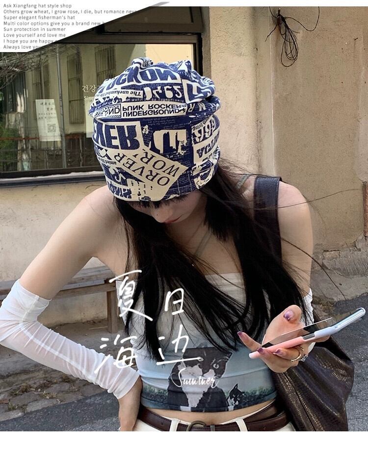 インターネット有名人揚げストリートハット女性バージョンレトロ薄セクション怠惰なフードスカーフ監禁帽子カップルプレーンフェイスヒープヒープ帽子包頭帽子 15dd4295303081