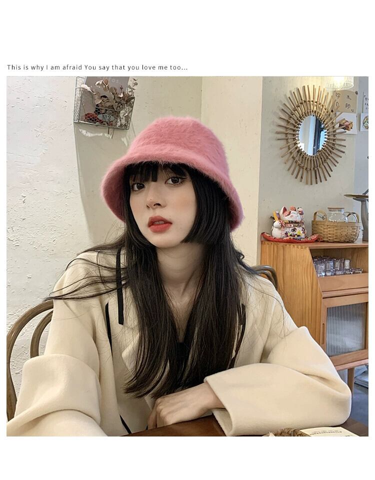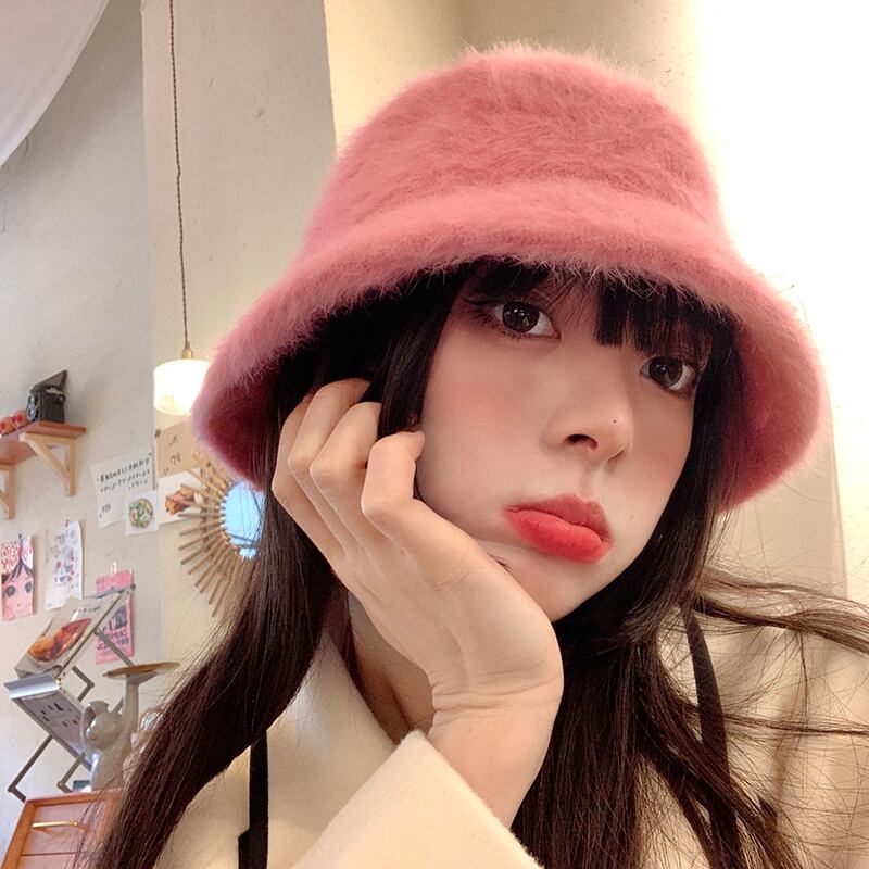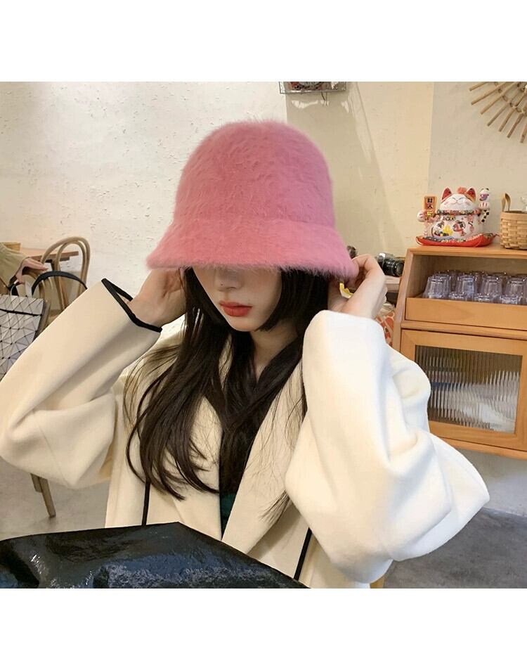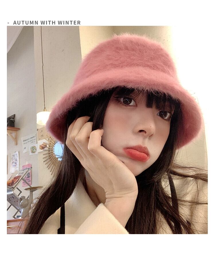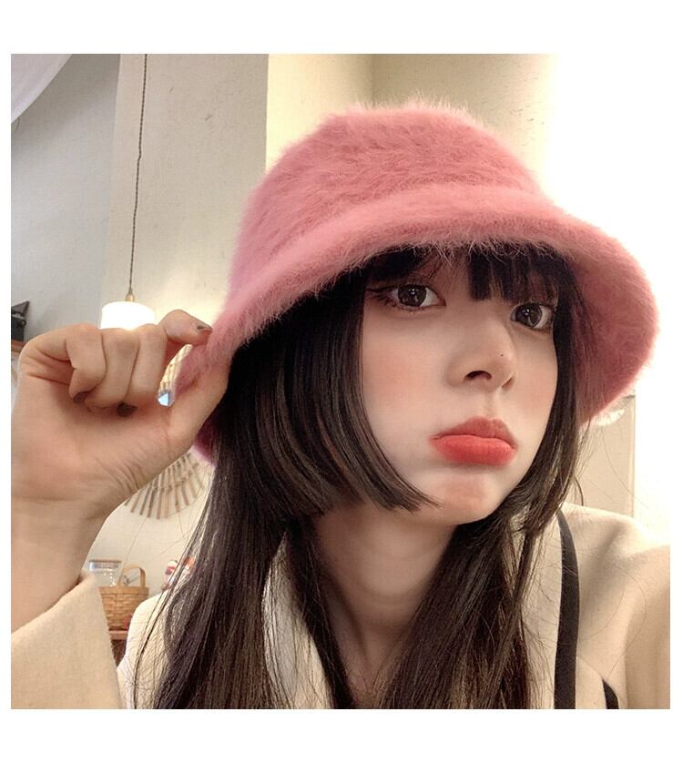 ラビットファーハット女性の冬のバケットハットオールマッチ豪華な漁師の帽子バージョン新しいスタイルに適した丸顔暖かい盆地帽子潮 ウィンター 冬物 15dd83666523558