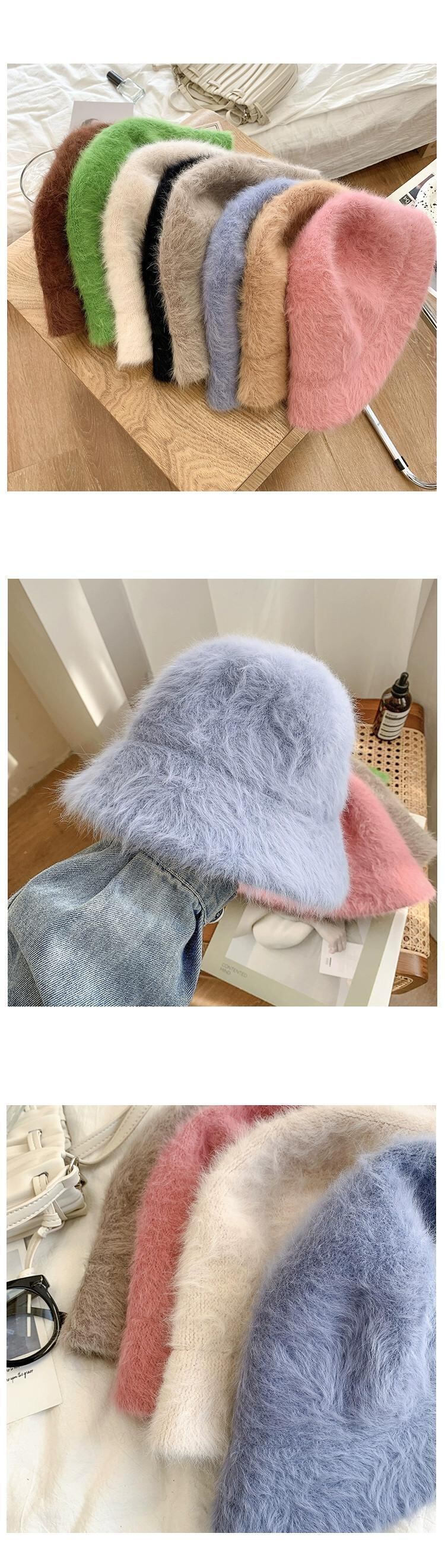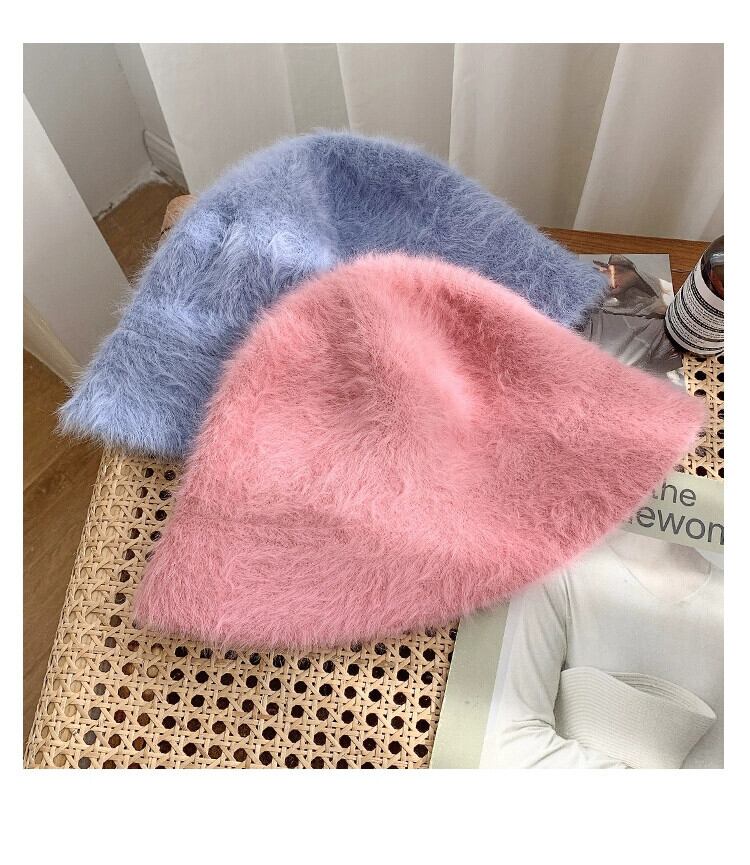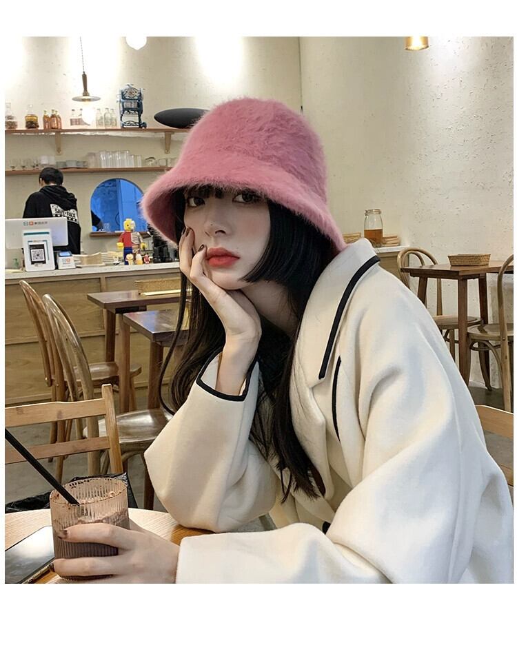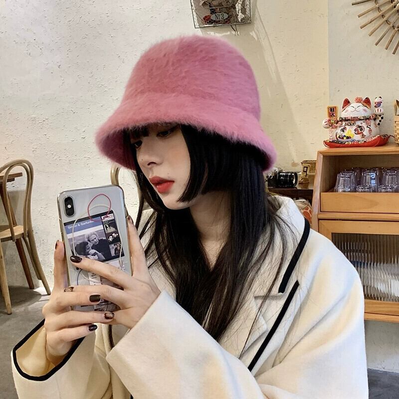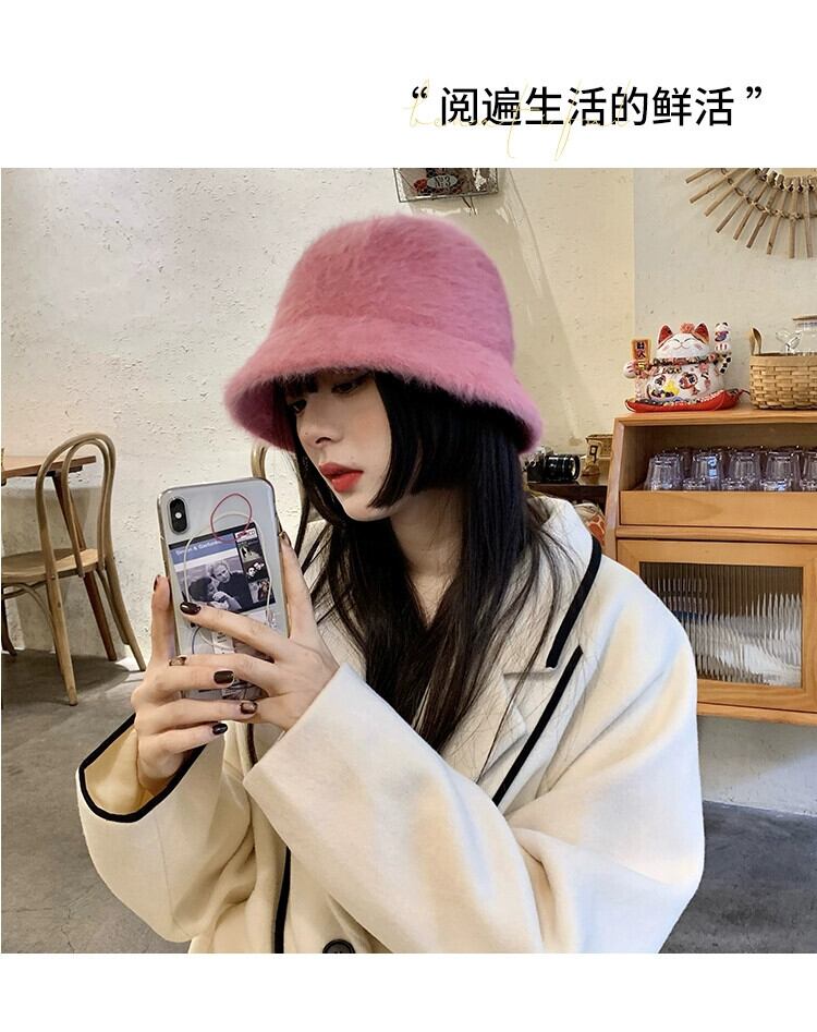 ラビットファーハット女性の冬のバケットハットオールマッチ豪華な漁師の帽子バージョン新しいスタイルに適した丸顔暖かい盆地帽子潮 ウィンター 冬物 15dd83666523558