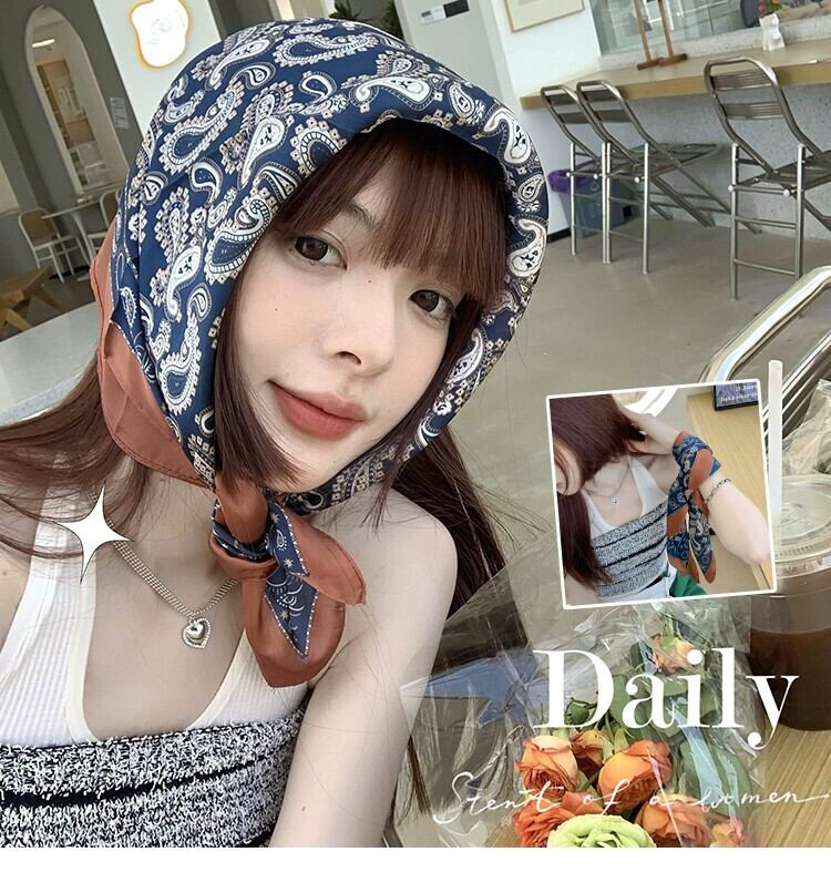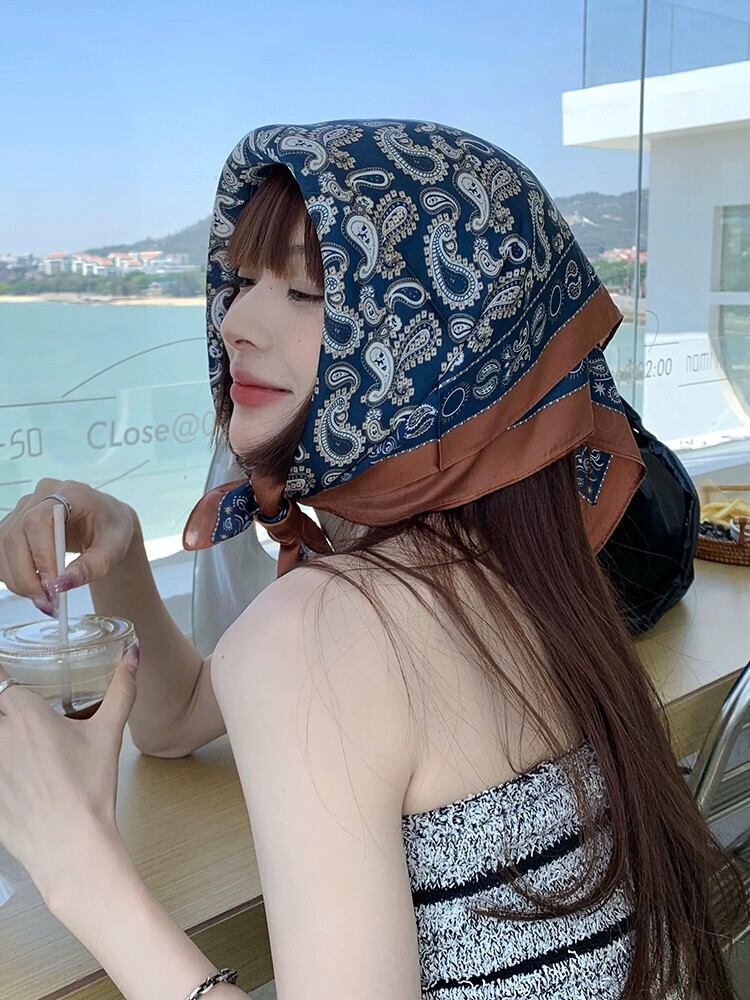 レトロな砂漠の小さな正方形のスカーフ女性オールマッチ包頭ターバンシャツ日焼け止めスカーフヘッドバンド夏 サマー 夏物 ヘアバンド ヘアアクセサリー スクウェア 15dd94805547074