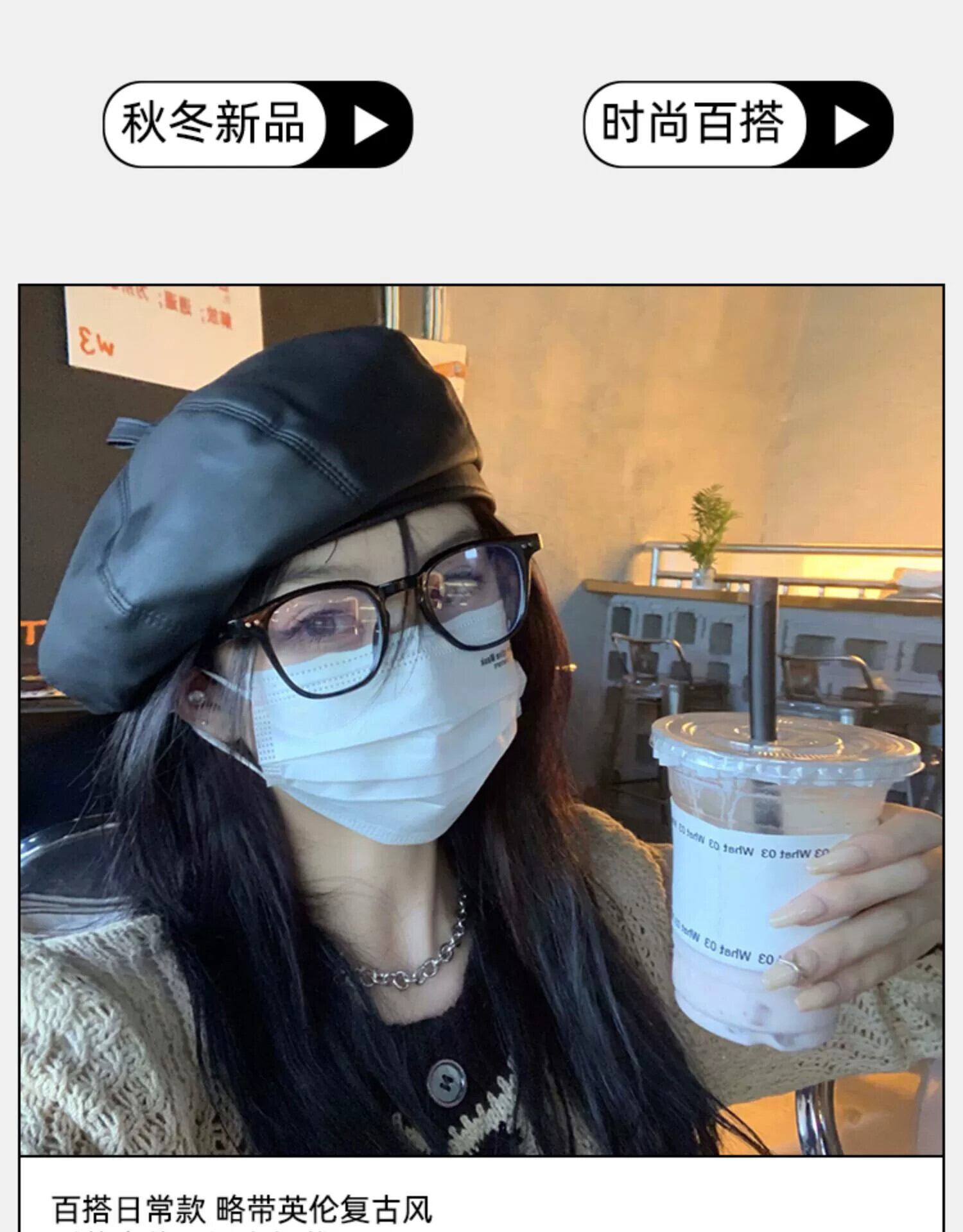 インネットレッドベレー帽レディース秋冬英国レトロレザーバージョンPUオールマッチエセ八角形帽子は小顔を見せます オータム 秋物 ウィンター 冬物 ベレット ヘアアクセサリー 15dd70825704925