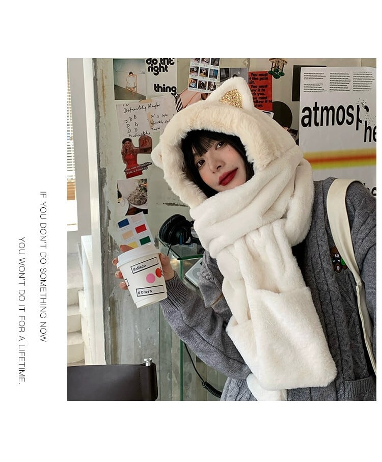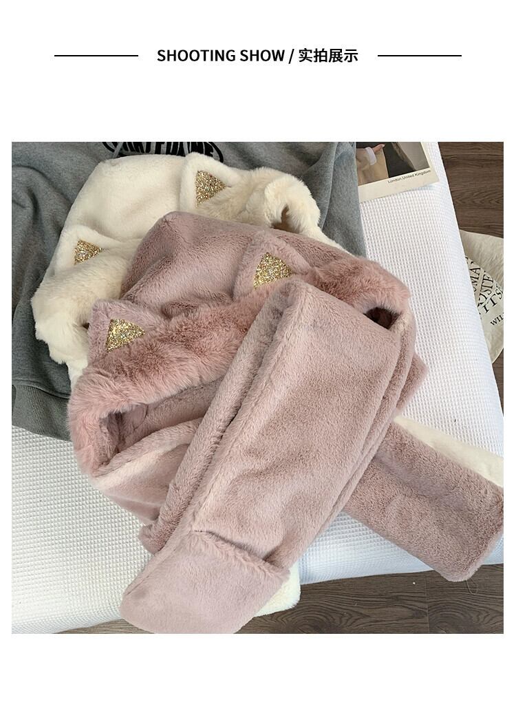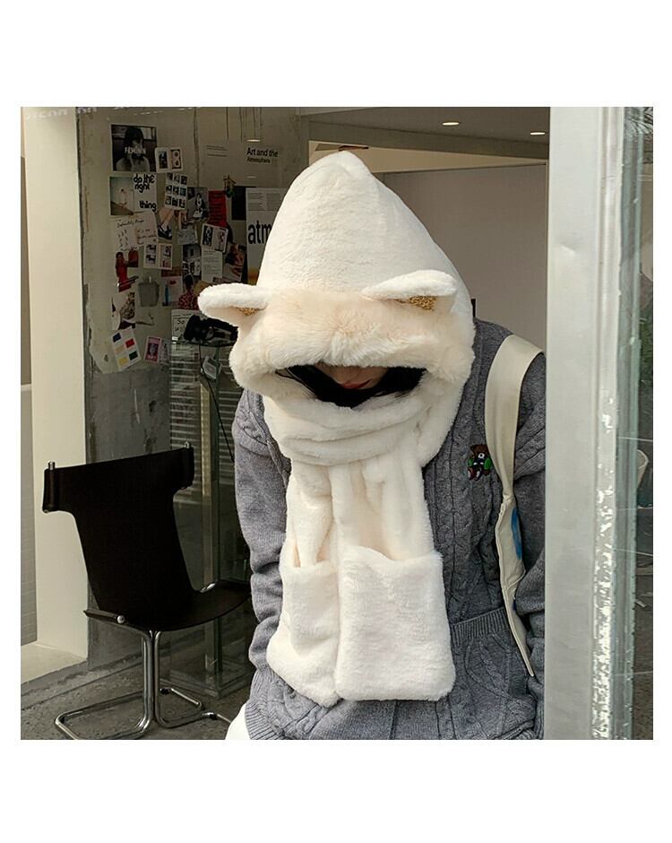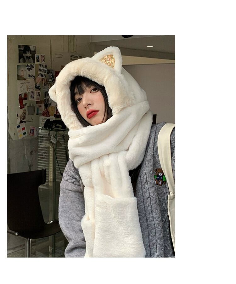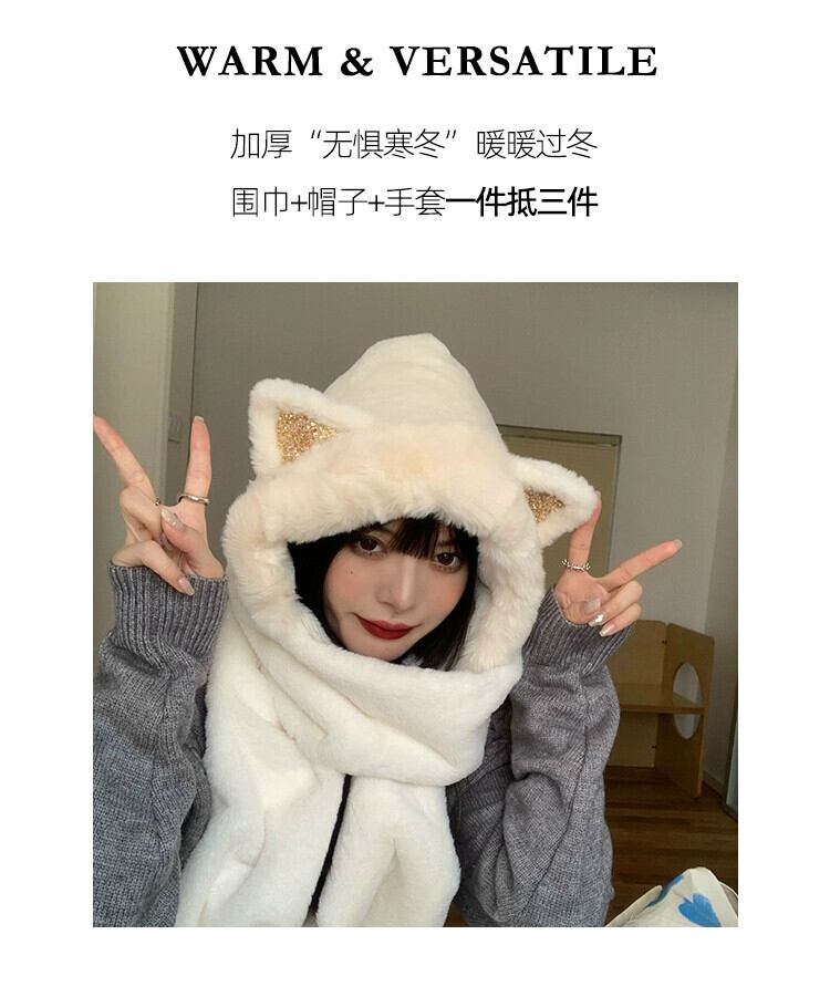 秋と冬の帽子とスカーフ 1 つの女性の冬かわいい猫耳豪華な耳保護キャップ厚く暖かいスカーフ手袋 大人ガーリー スウィート キュート カジュアル オータム 秋物 ウィンター 冬物 15dd75780544042