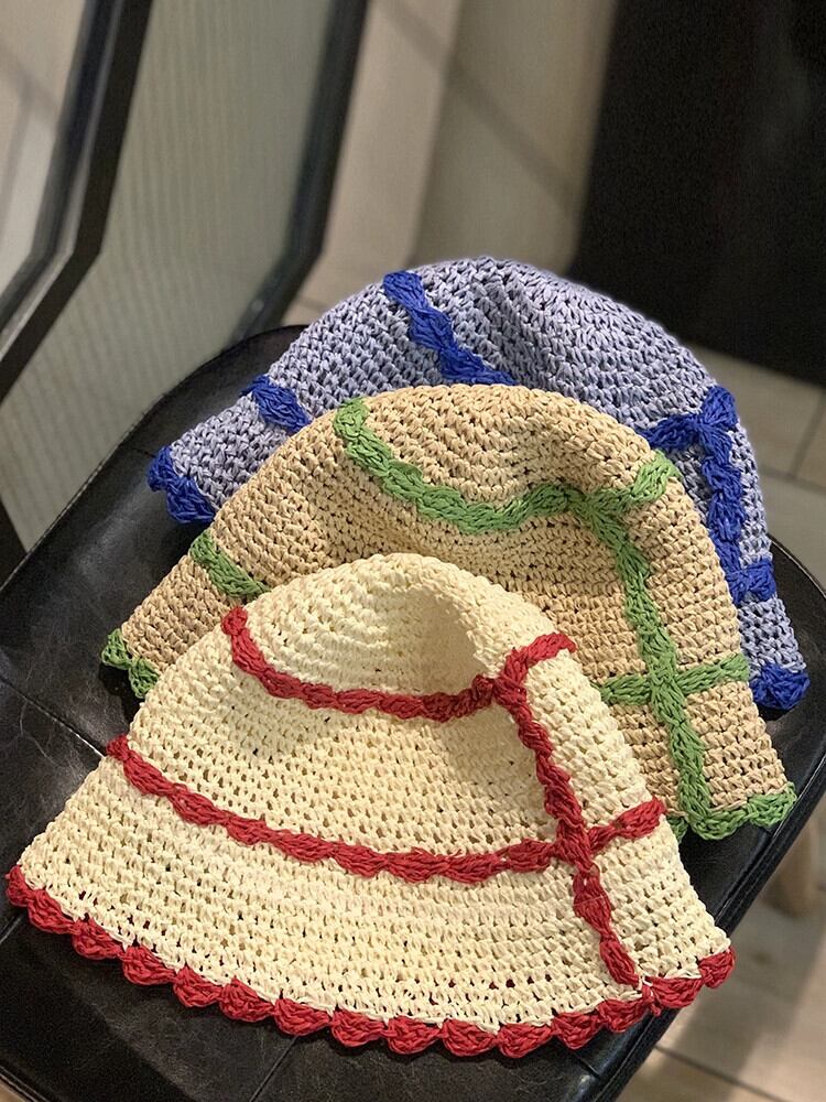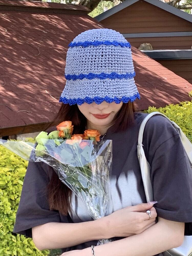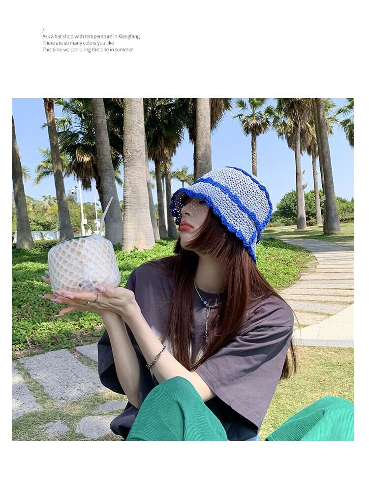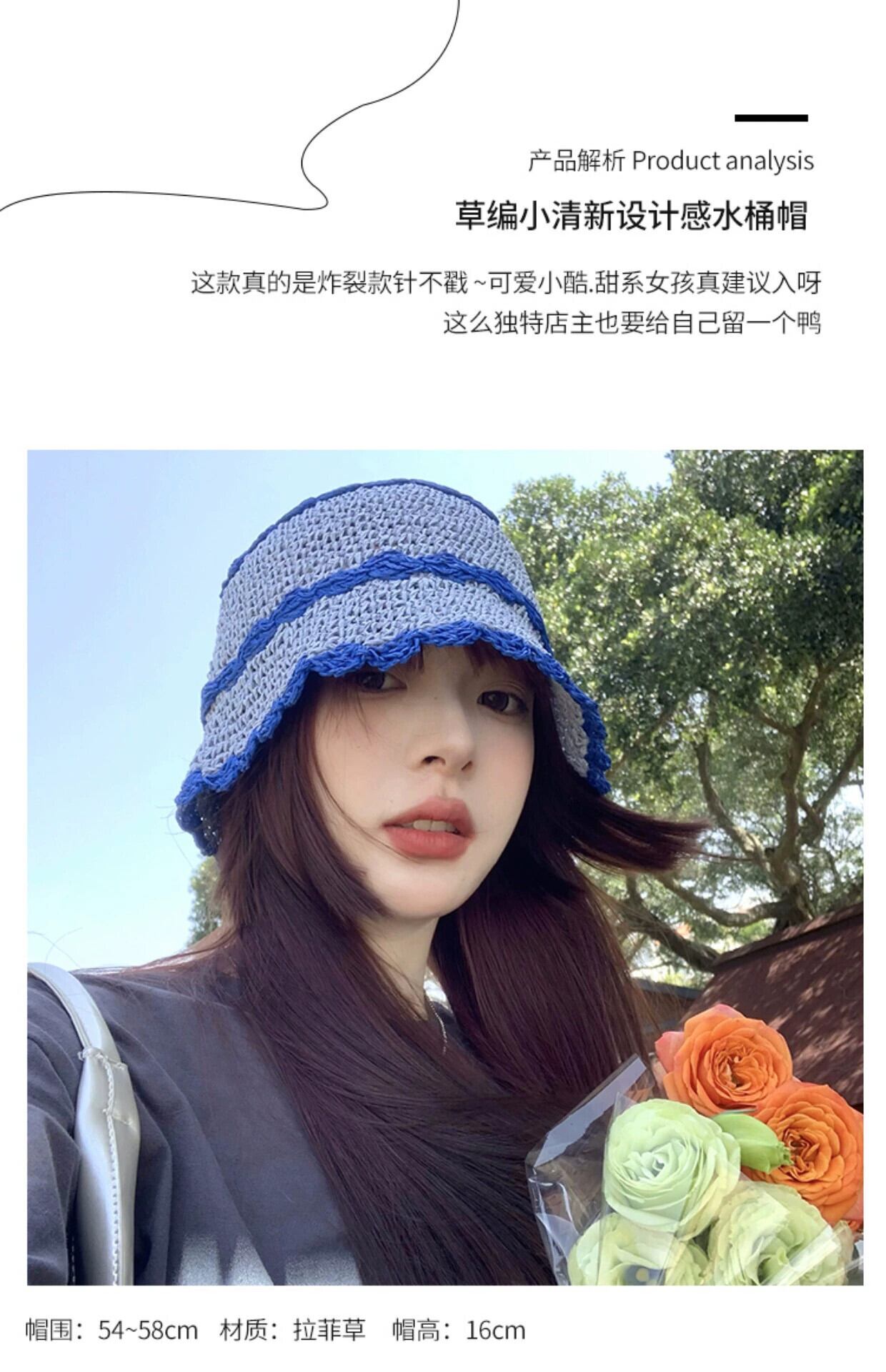 わら漁師の帽子の女性の夏中空通気性麦わら帽子夏の日よけ帽子大きな頭囲日焼け止めバケツ帽子潮 サマー 夏物 15dd75693691502