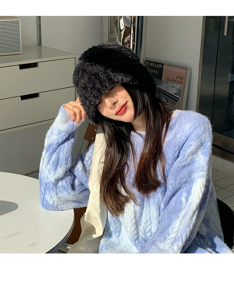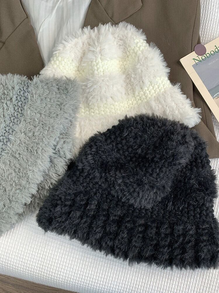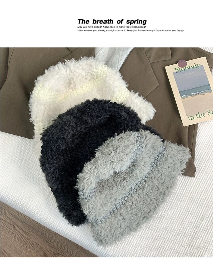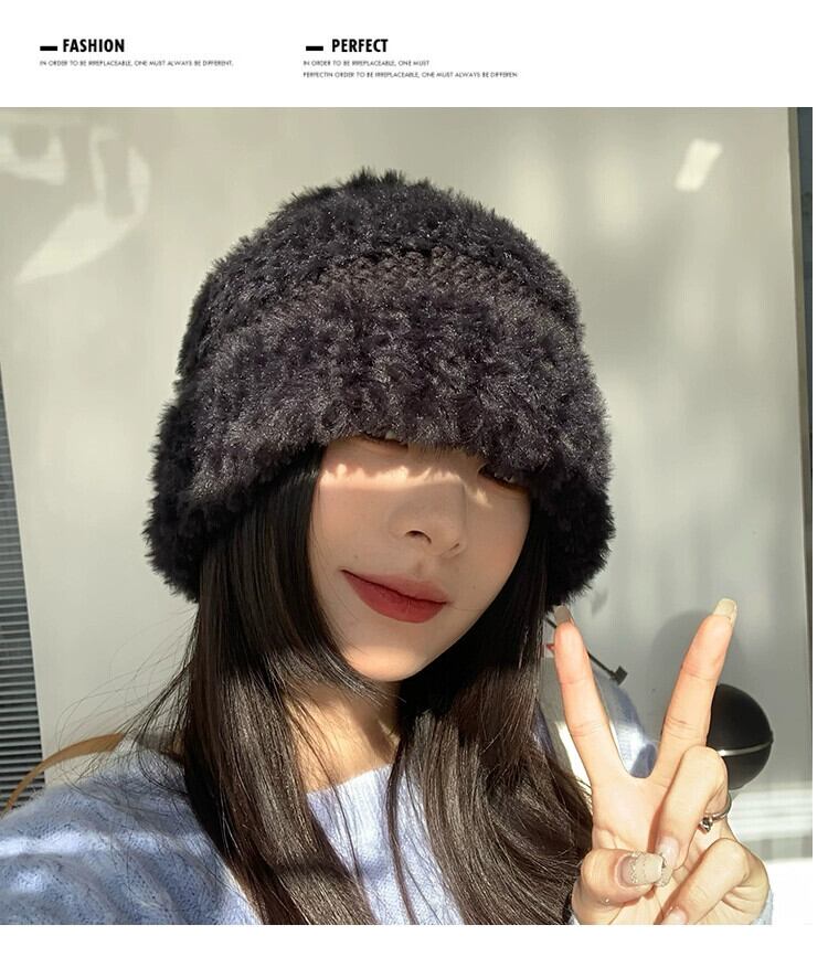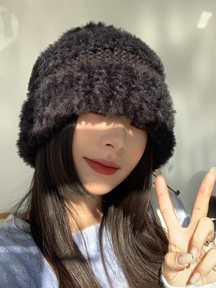 黒ウールの帽子冬肥厚暖かい耳保護豪華なニット帽子ショーフェイス小さな漁師の帽子女性 ブラック ウィンター 冬物 15dd43861887674