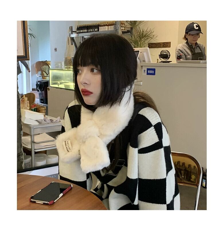 毛皮スカーフ女性冬学生オールマッチ模造毛皮スカーフ白模造レックスウサギの毛皮暖かい毛皮の襟トレンディ ホワイト ウィンター 冬物 15dd32703215188