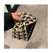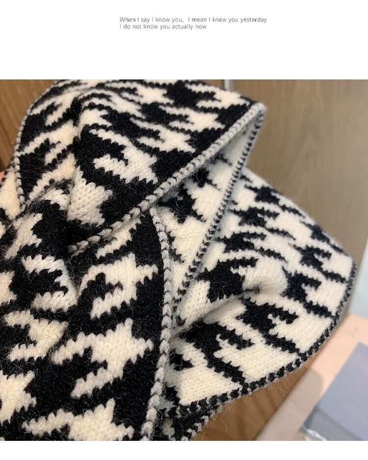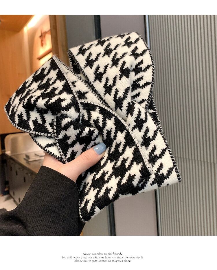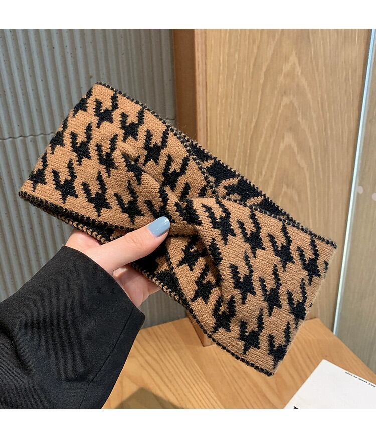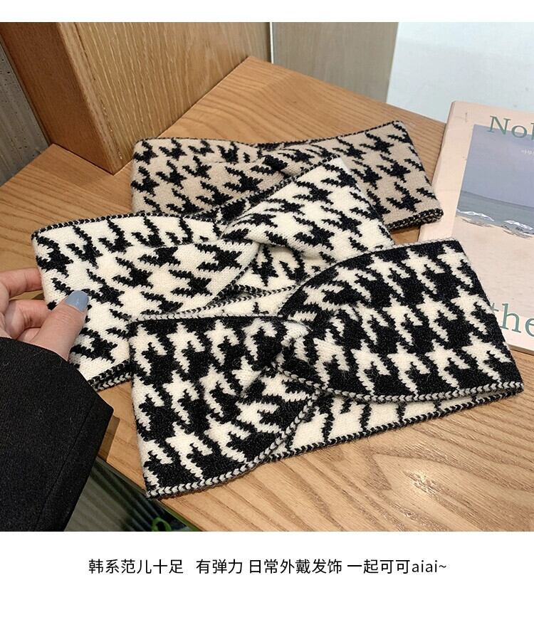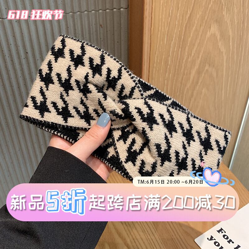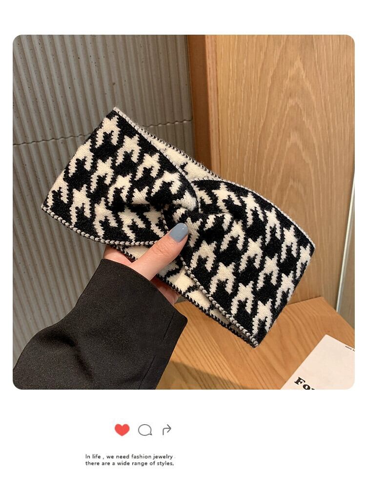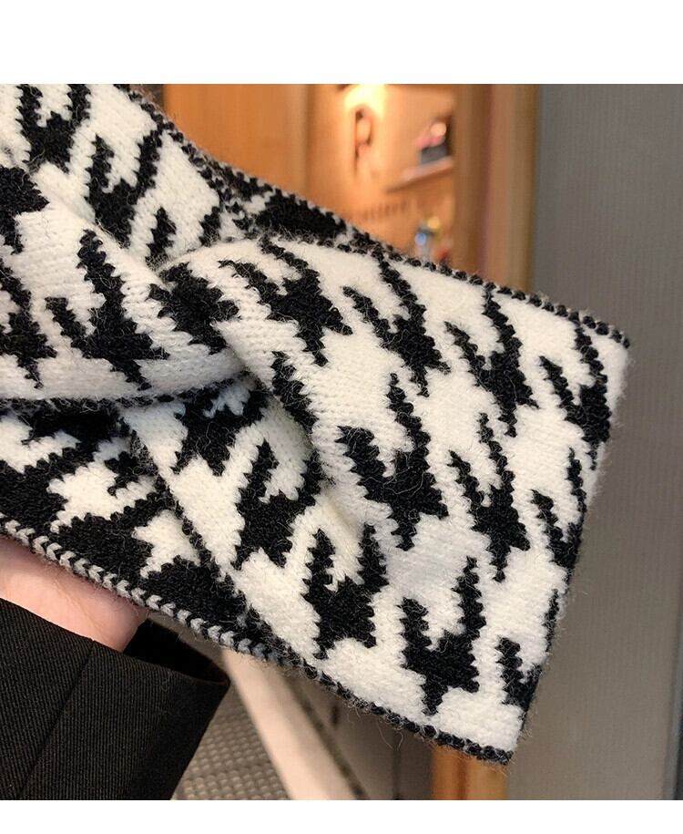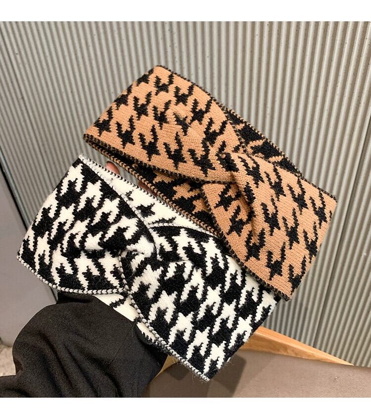 黒と白のウールの新しい秋と冬の毎日の洗顔気質千鳥格子ヘッドバンドファッションクロスつば広ニットスポーツ女性 ホワイト ブラック オータム 秋物 ウィンター 冬物 ヘアバンド ヘアアクセサリー 15dd85760212698