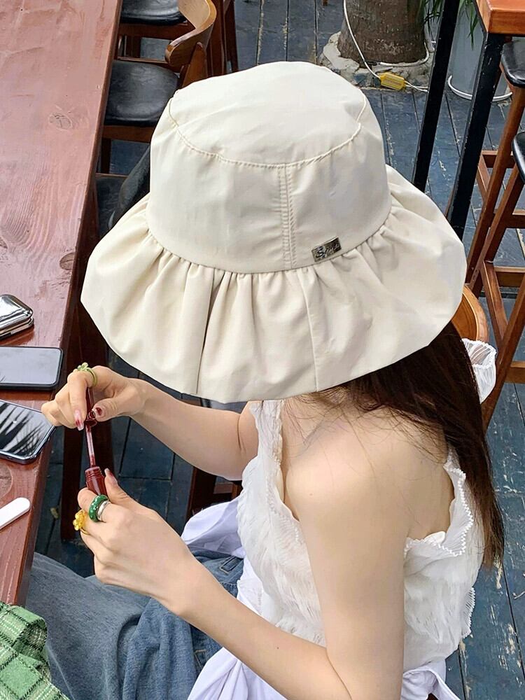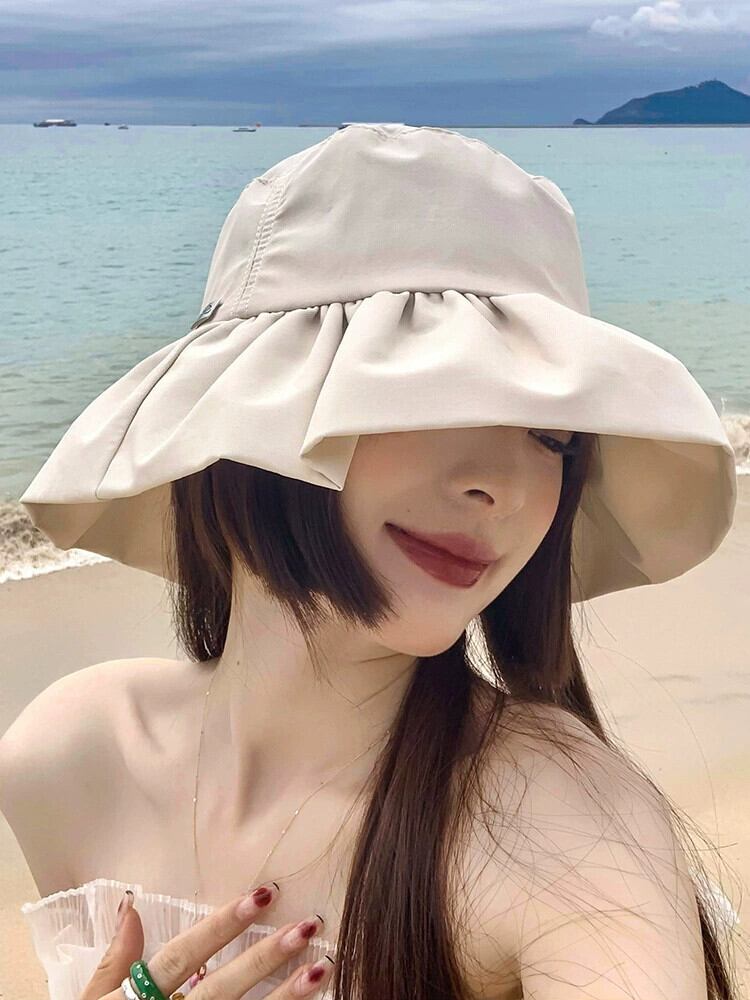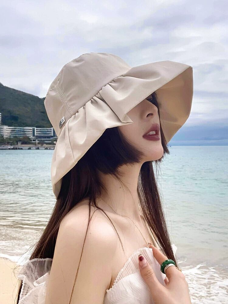 インのバージョンの大きなひさし日焼け止め漁師の帽子女性の春と夏のファッションオールマッチ太陽の帽子大きな頭周り盆地帽子ビーチ帽子 スプリング 春物 サマー 夏物 15dd7598081245