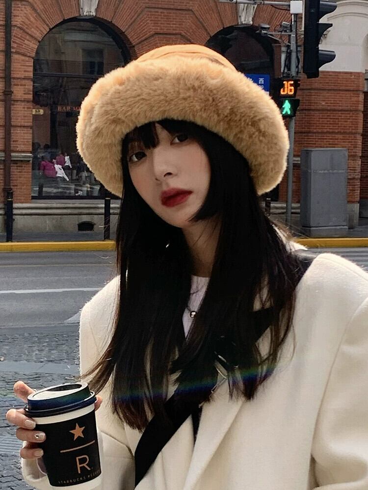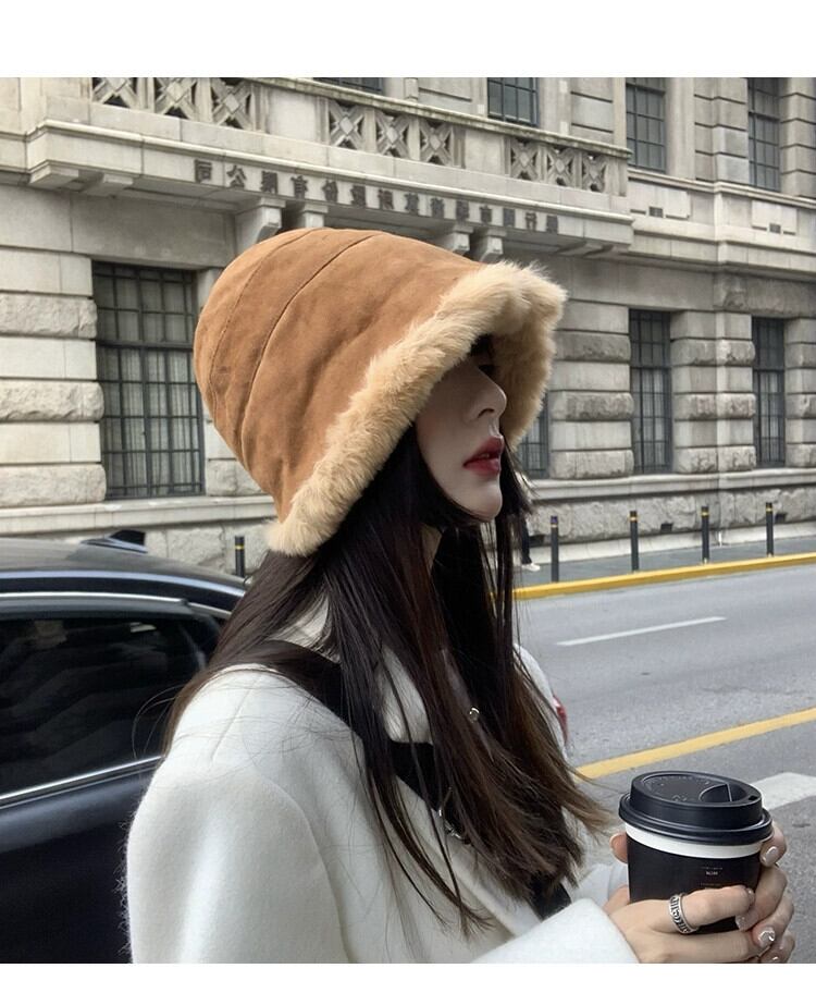 帽子女性の秋と冬オールマッチネットレッドプラスベルベットラムウール漁師の帽子冬暖かい大きな頭囲豪華な盆地帽子 オータム 秋物 ウィンター 冬物 15dd91892238171