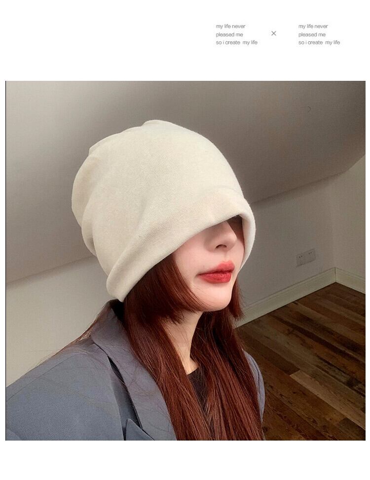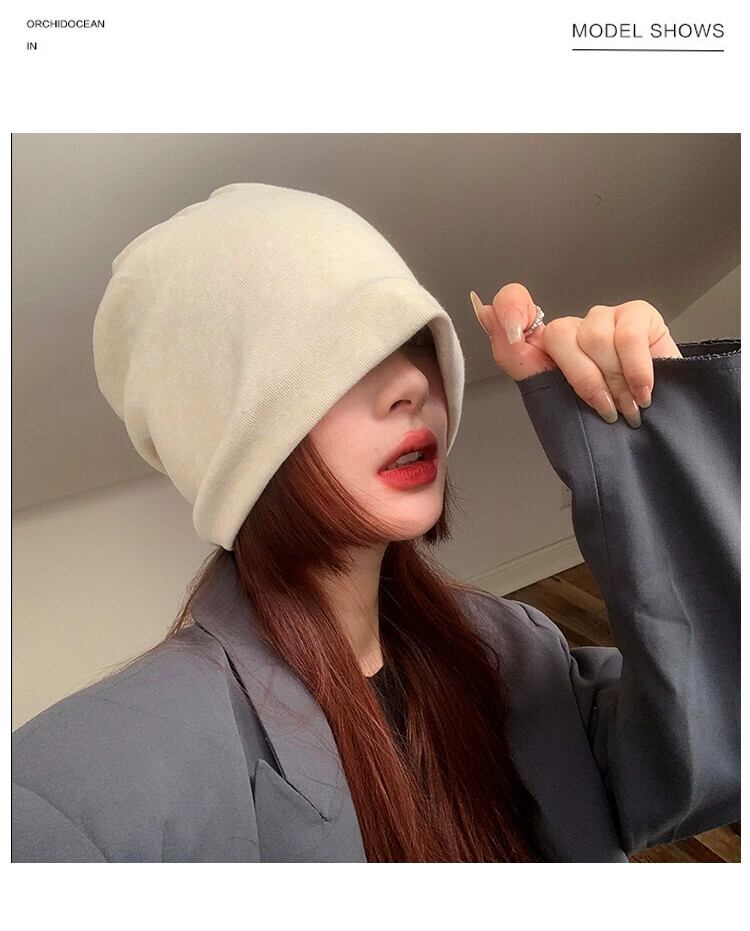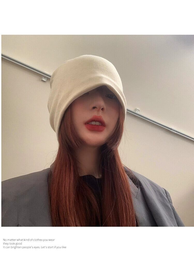 イン風編みネット赤無地ヒープ帽子女性の秋と冬オールマッチ大きな頭周り包頭キャッププルオーバー包頭監禁帽子 レッド オータム 秋物 ウィンター 冬物 ソリッドカラー 15dd46163112762