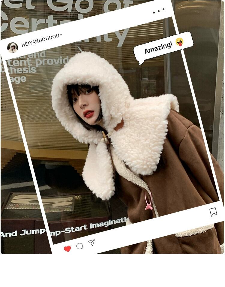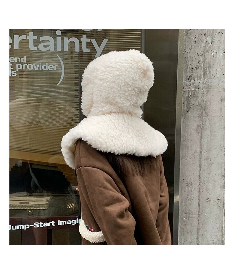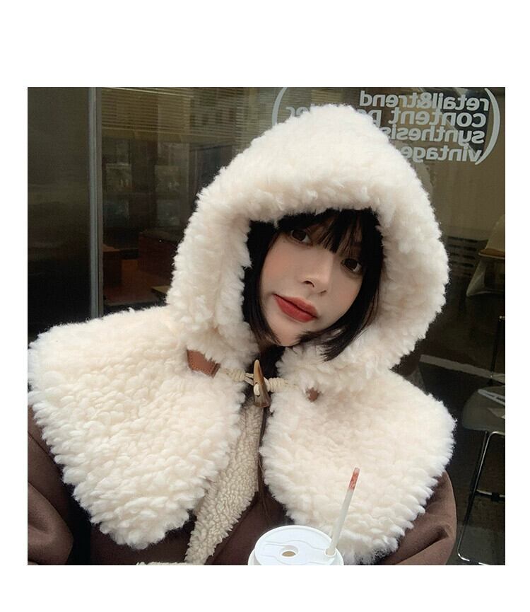 ラムウールの帽子の女性の秋と冬バージョンオールマッチレトロフード付きショール冬厚く暖かい耳保護豪華なスカーフ オータム 秋物 ウィンター 冬物 15dd8356221266