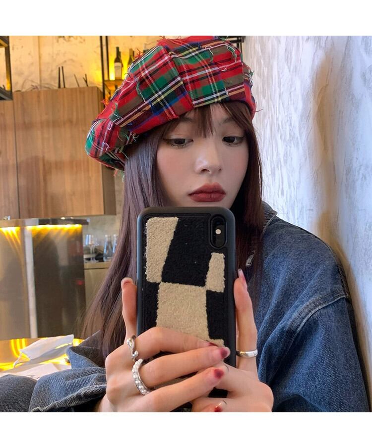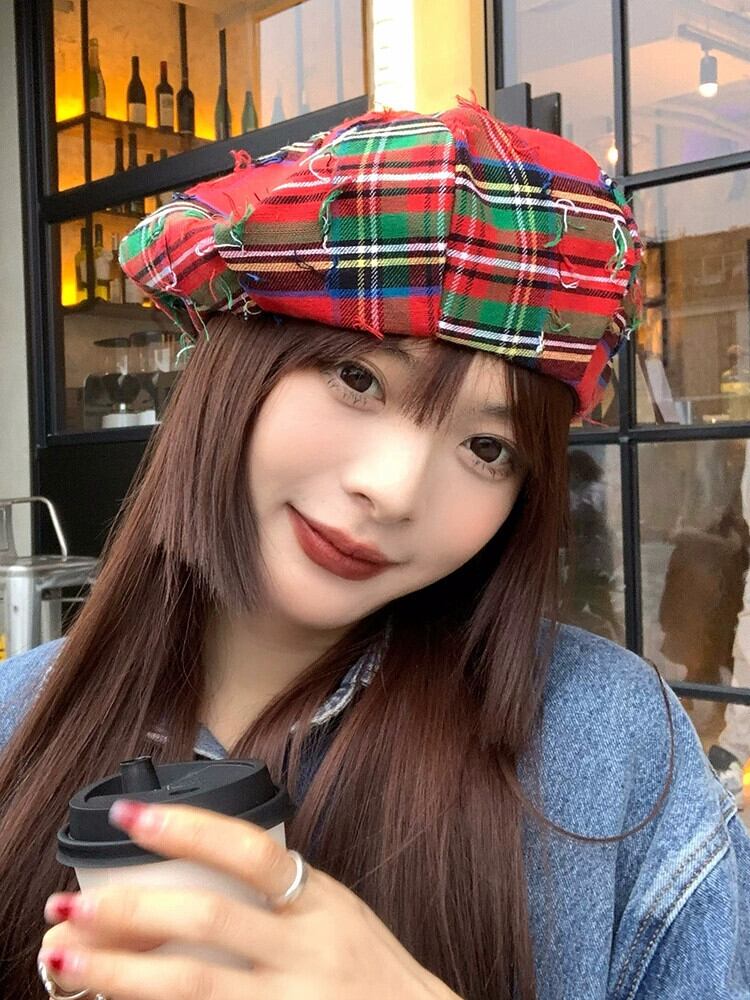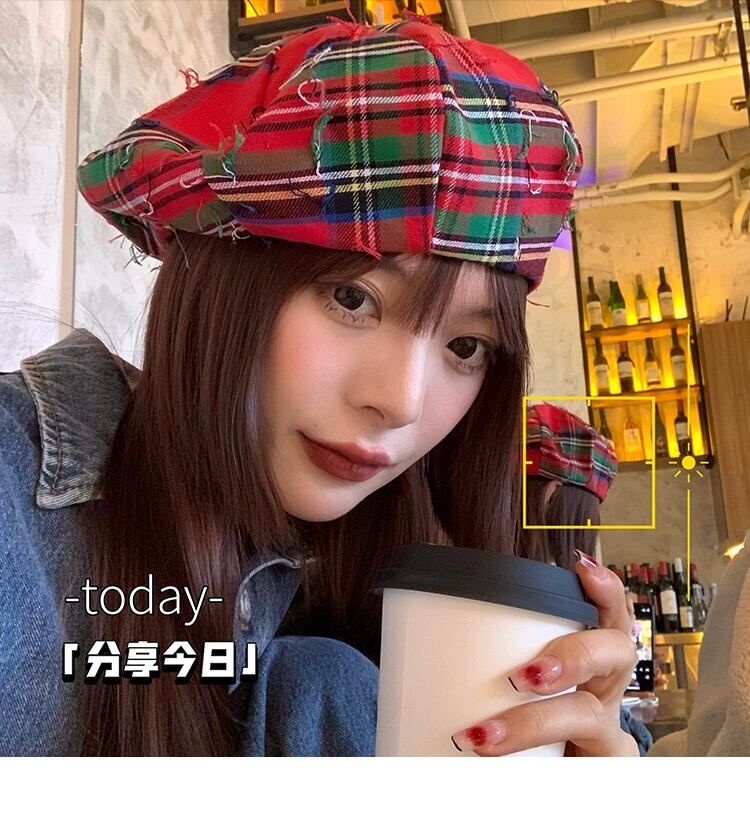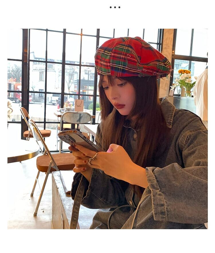 ネット赤い人格赤いチェック柄ベレー帽女性バージョンインファッションレトロ八角形帽子夏の大きな頭囲アーティスト帽子 レッド サマー 夏物 ベレット ヘアアクセサリー 15dd59598999406