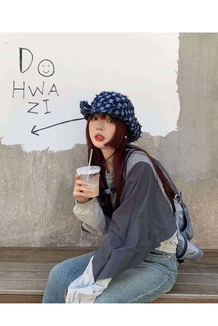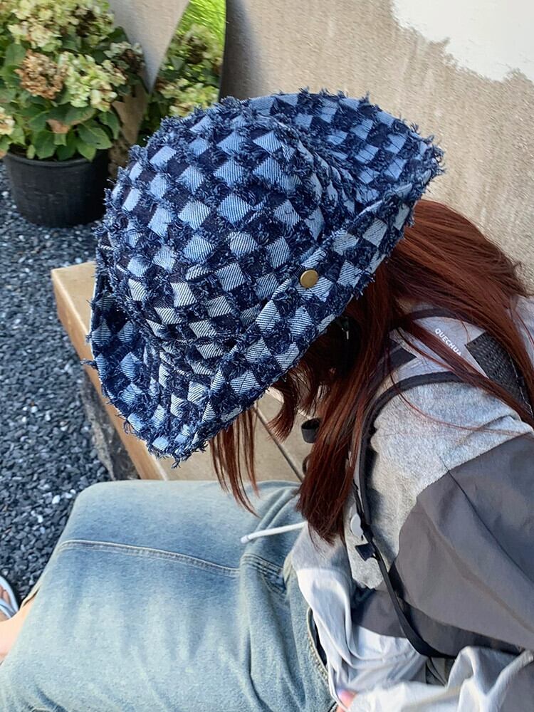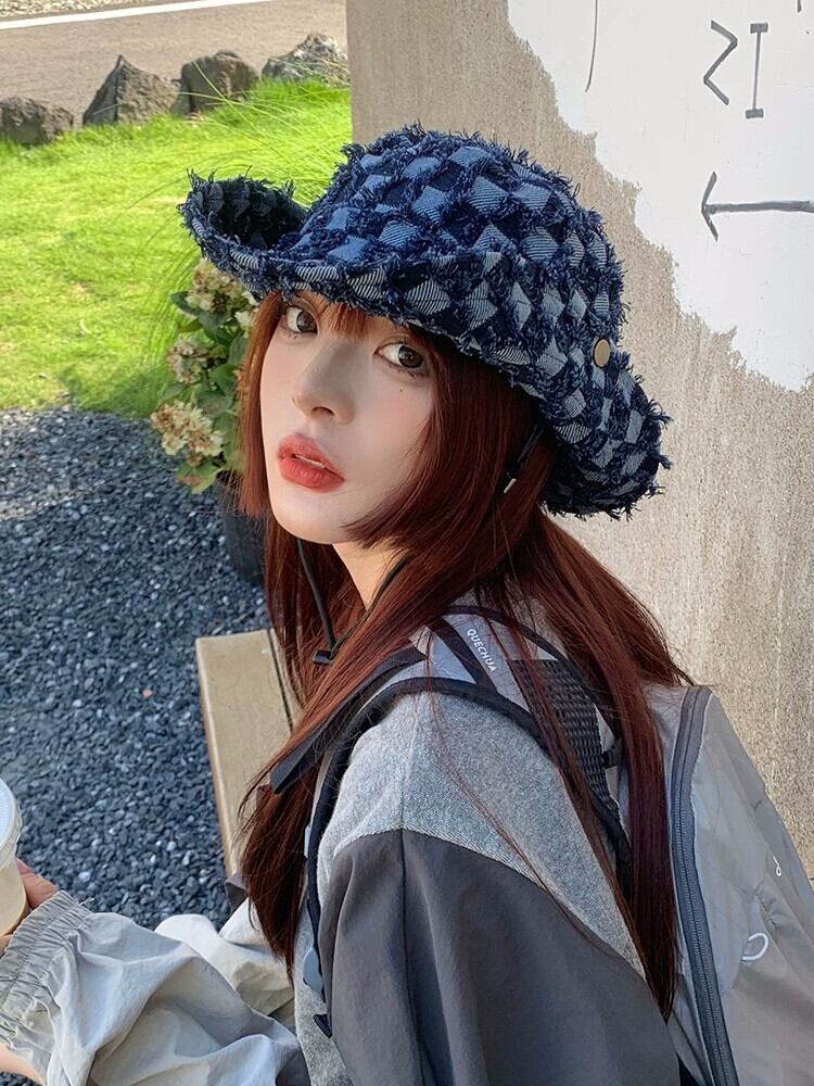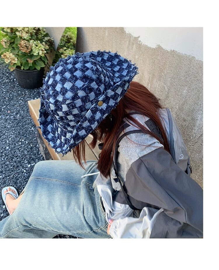 チェッカーボードウエスタンカウボーイハット女性の春と秋の新しい旅行日焼け止めファーエッジ漁師の帽子屋外サンバイザートレンド スプリング 春物 オータム 秋物 15dd7011704893