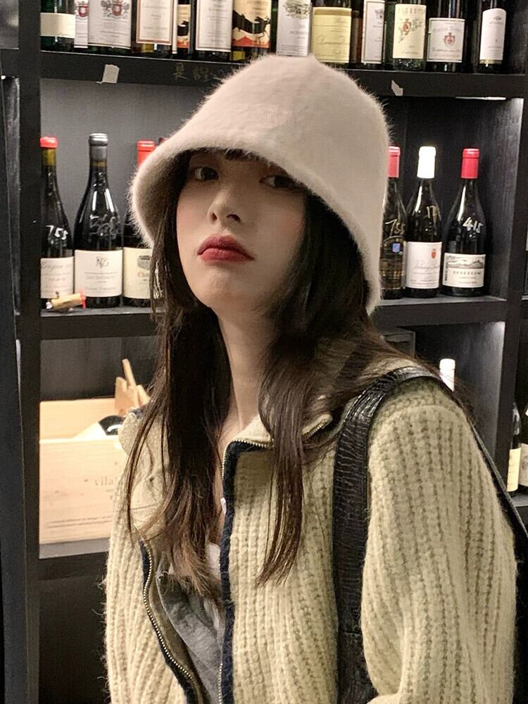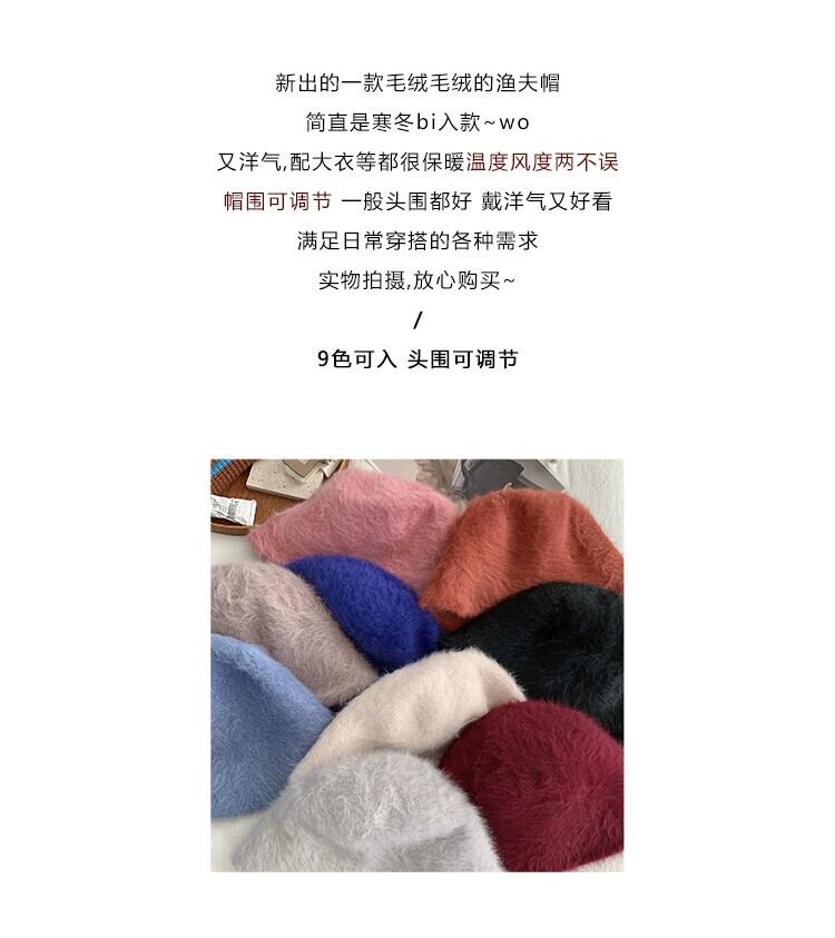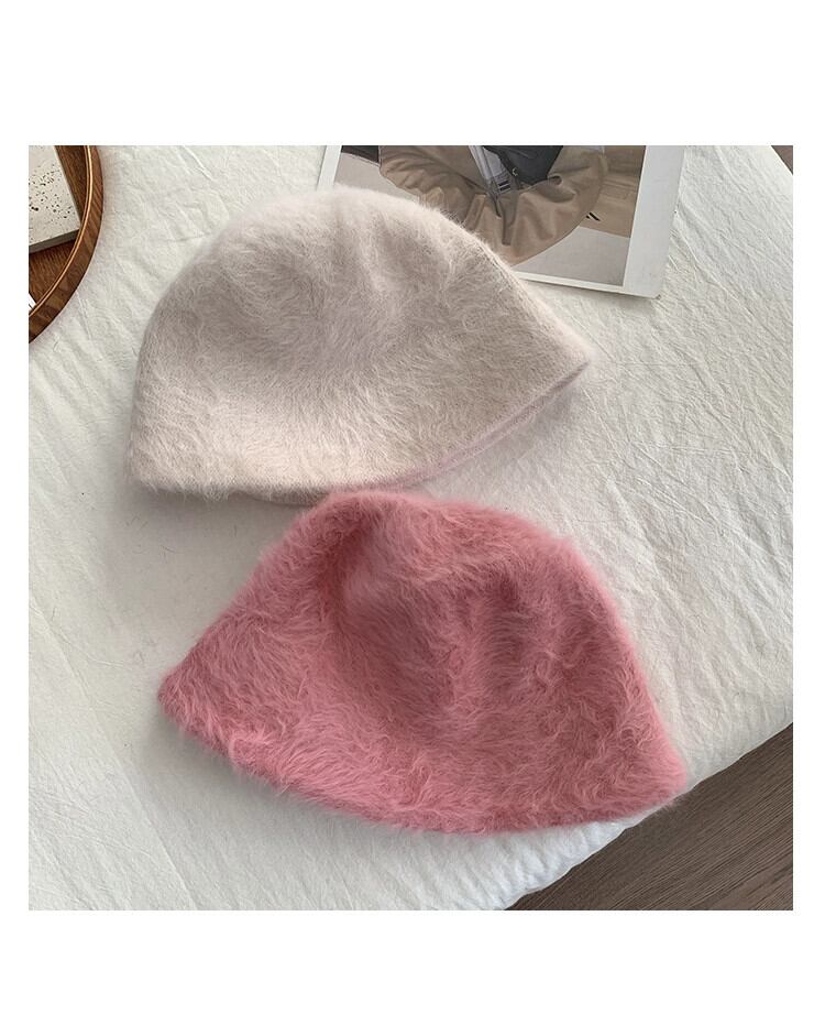 ラビットファーハット女性の秋と冬の新バージョンのオールマッチ豪華な漁師の帽子冬の大きな頭の周りの小さなバケットハットトレンディ オータム 秋物 ウィンター 冬物 15dd53613279371