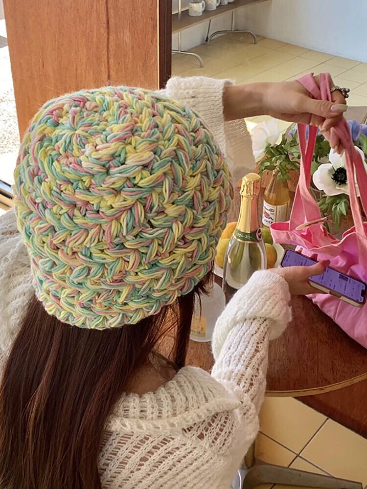 粗ニットウール帽子女性の秋と冬手織り暖かい耳保護漁師の帽子ファッションオールマッチバケツ盆地帽子 オータム 秋物 ウィンター 冬物 15dd23531924887