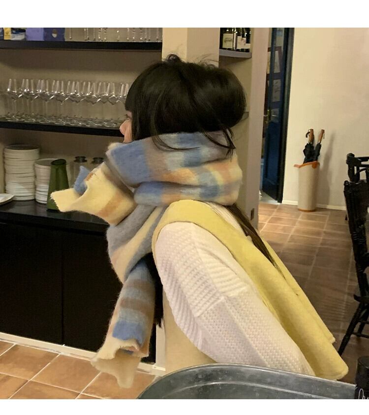 レトロ模造カシミヤチェック柄スカーフ女性の冬のファッションオールマッチショール秋と冬の学生厚く暖かいスカーフ オータム 秋物 ウィンター 冬物 15dd29906304406