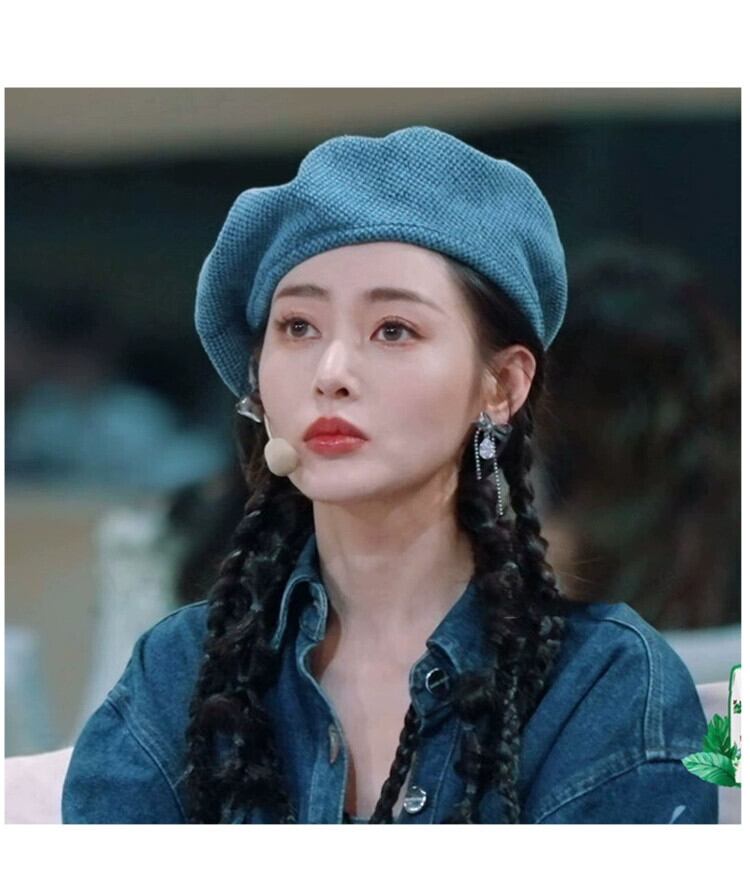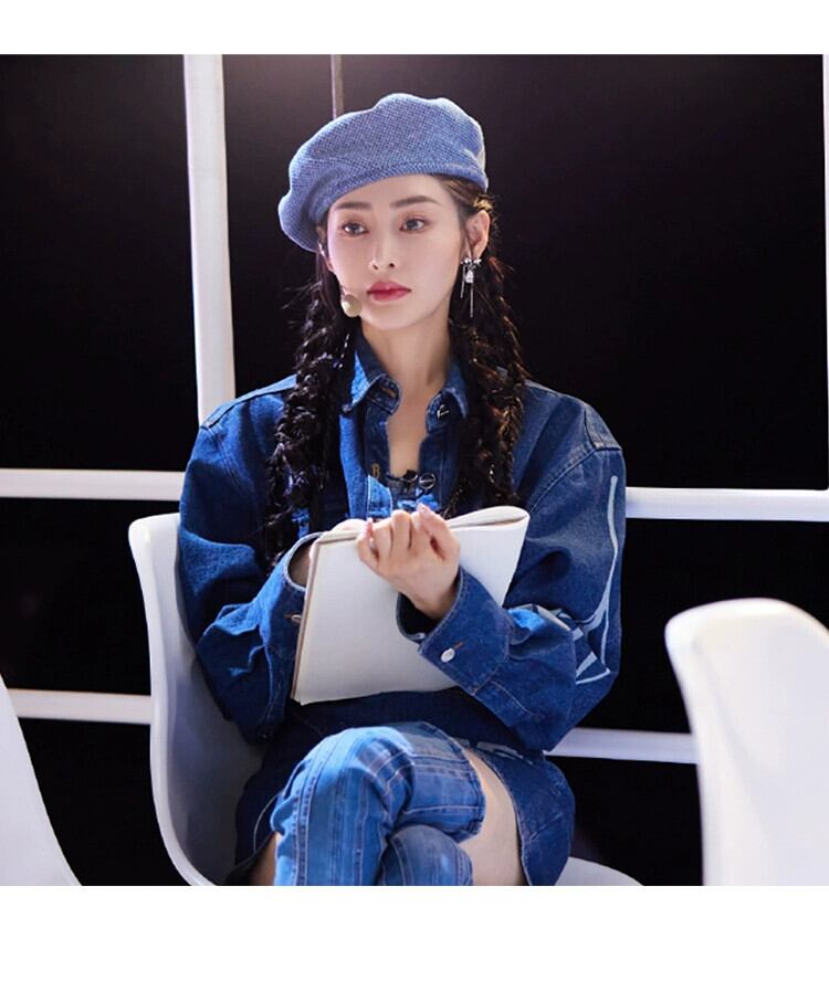 張天愛の同じスタイルのデニムベレー帽の女性の春と秋の英国のレトロなファッションオールマッチ画家の帽子が顔を出す小さなベレー帽 スプリング 春物 オータム 秋物 ベレット ヘアアクセサリー 15dd34257690728