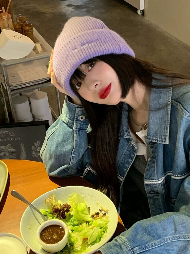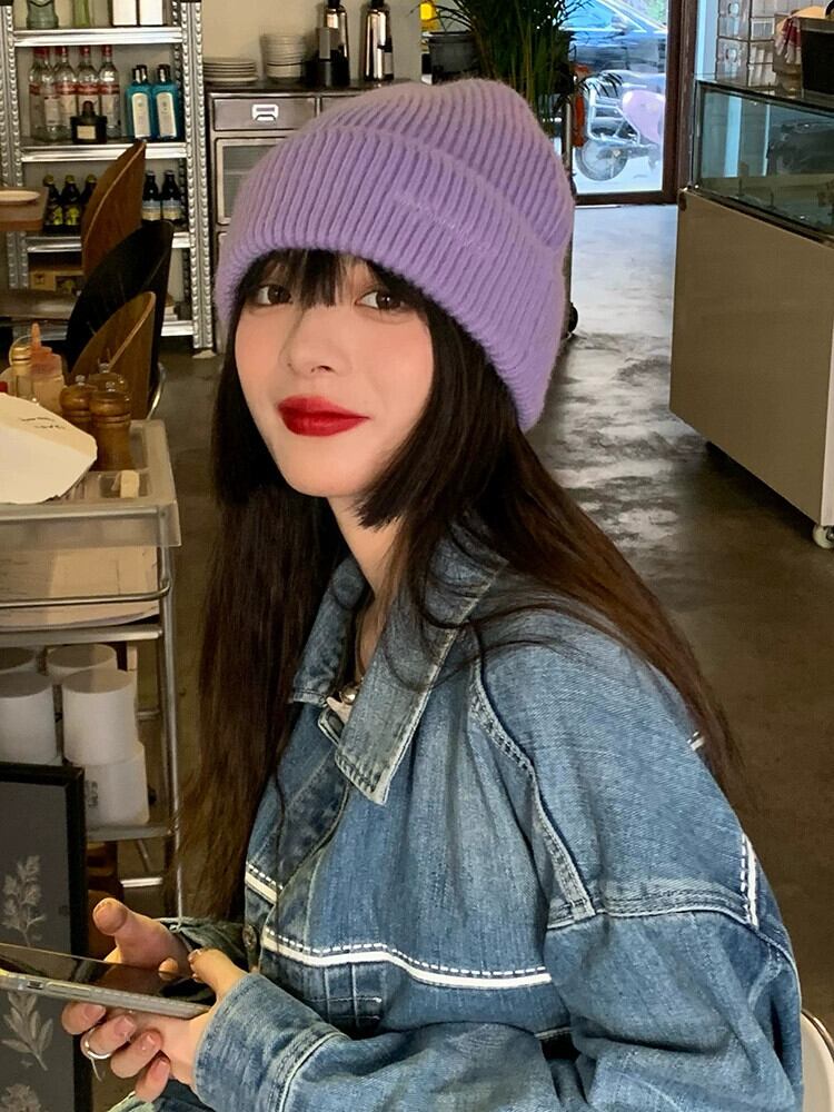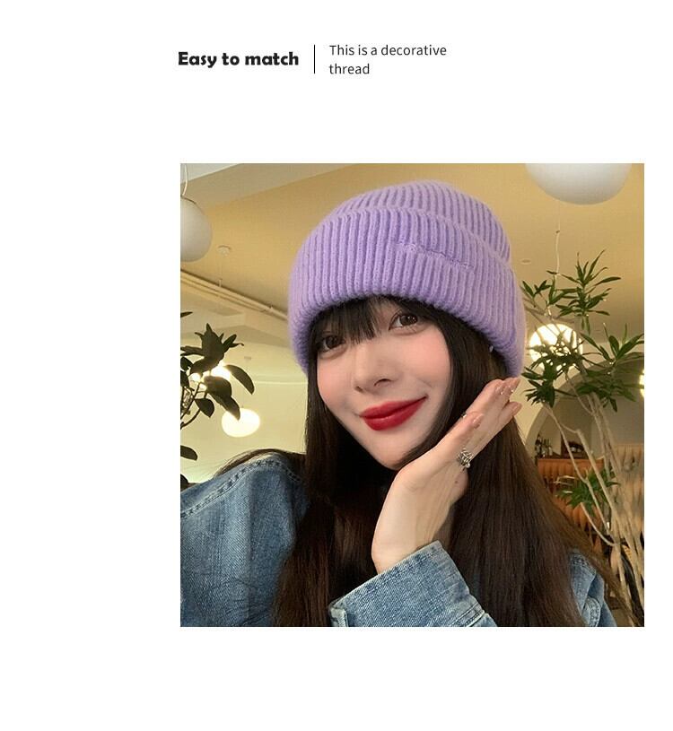 ウール帽子女性の大きな頭囲秋と冬 ese オールマッチ文字無地ニット帽子冬の学生厚く暖かい防寒帽子 オータム 秋物 ウィンター 冬物 ソリッドカラー 15dd33053575274