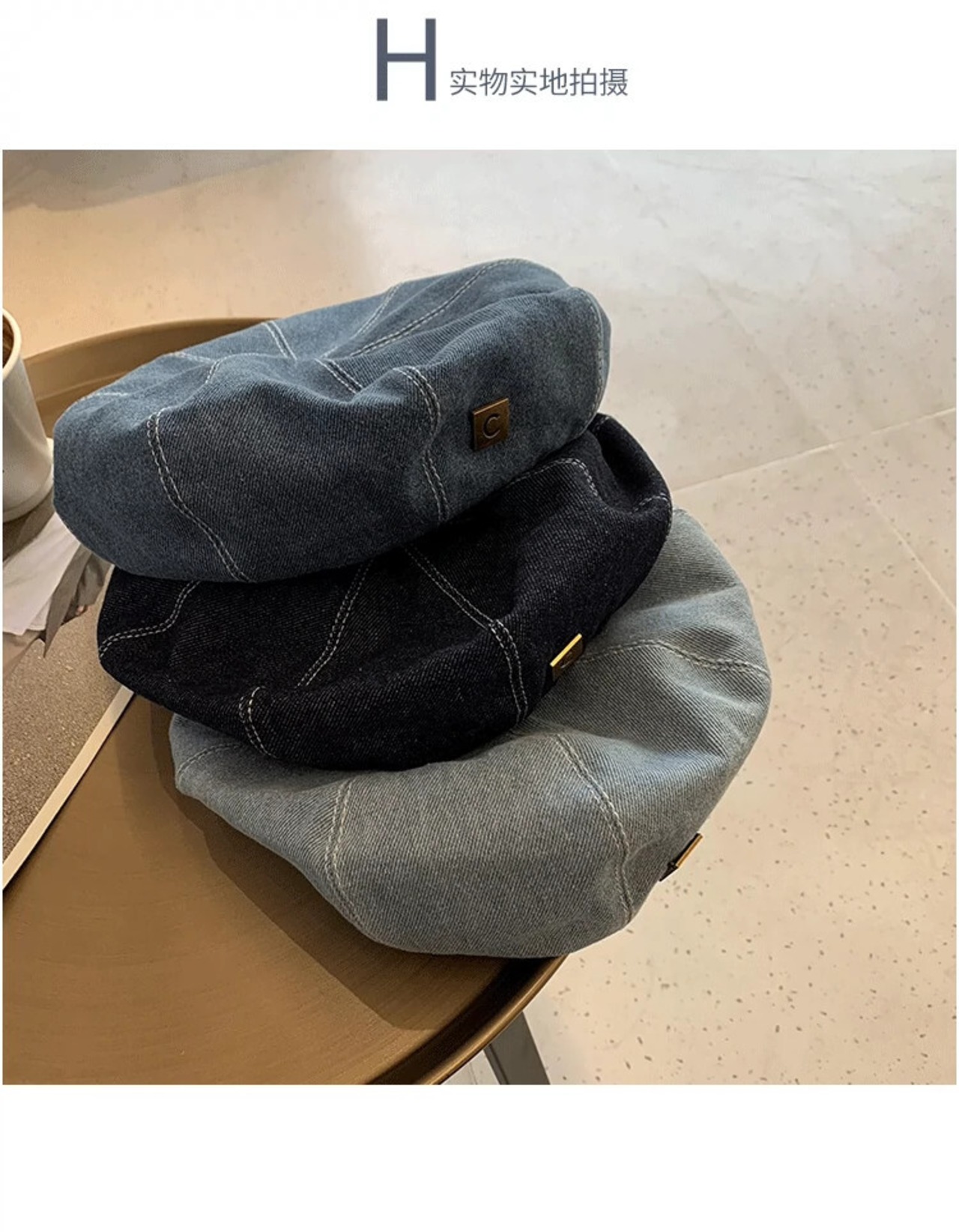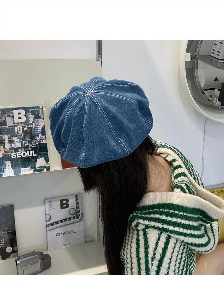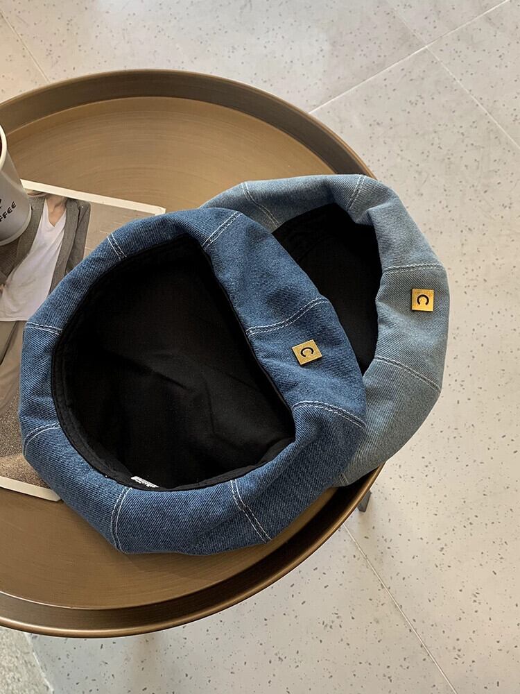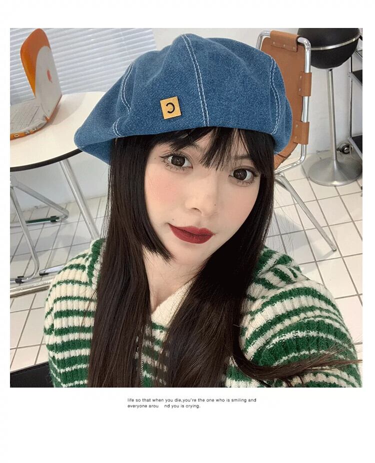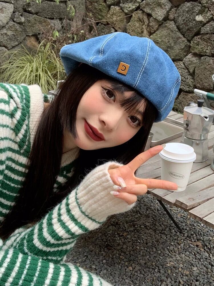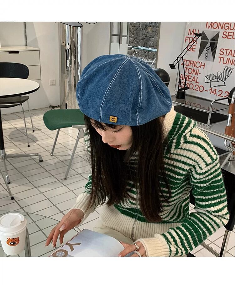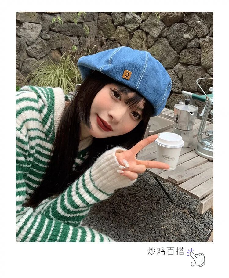 これらのオールマッチデニムビッグヘッドベレー帽女性の春と秋の新バージョン丸顔レトロネットレッド八角形アーティストハット 帽子 スプリング 春物 オータム 秋物 ベレット ヘアアクセサリー 15dd83521580472