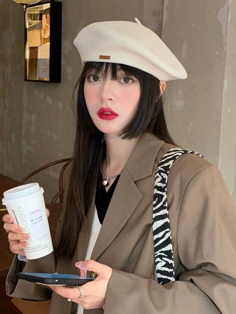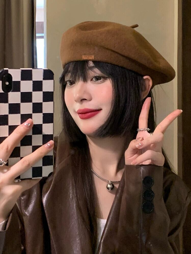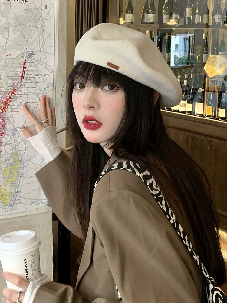 インネットレッド高級ウールベレー帽レディース春秋オールマッチショーフェイス小秋冬ファッションレトロ画家の帽子 スプリング 春物 オータム 秋物 ウィンター 冬物 ベレット ヘアアクセサリー 15dd79635986535