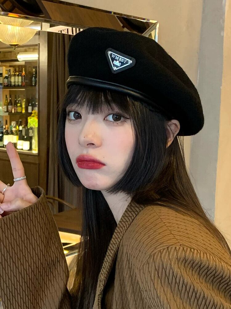 ese 三角標準ウールベレー帽女性 ins ネット赤英国スタイルのレトロ画家帽子大きな頭囲秋と冬 レッド オータム 秋物 ウィンター 冬物 ベレット ヘアアクセサリー 15dd26769193980