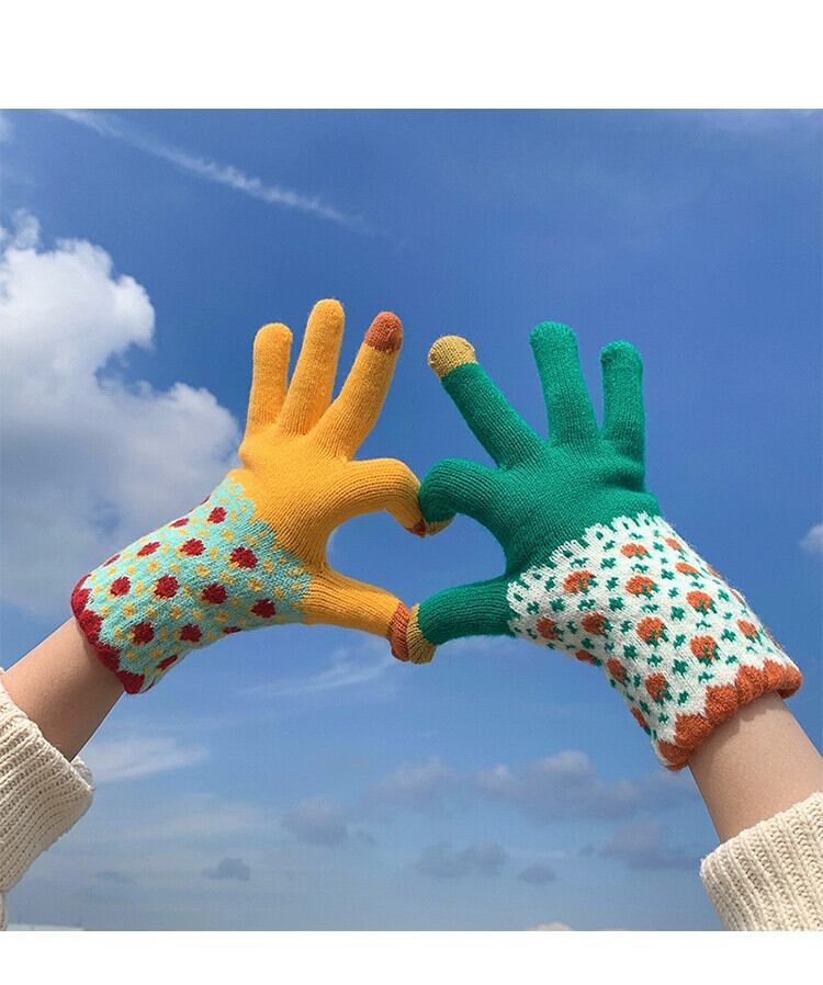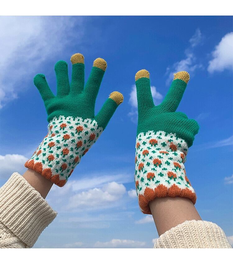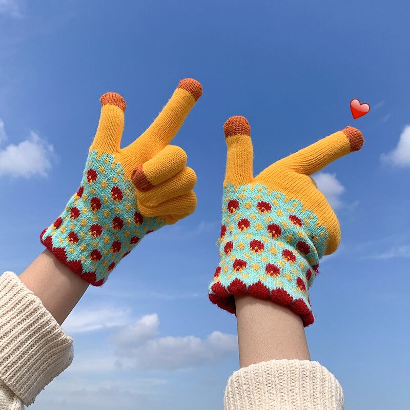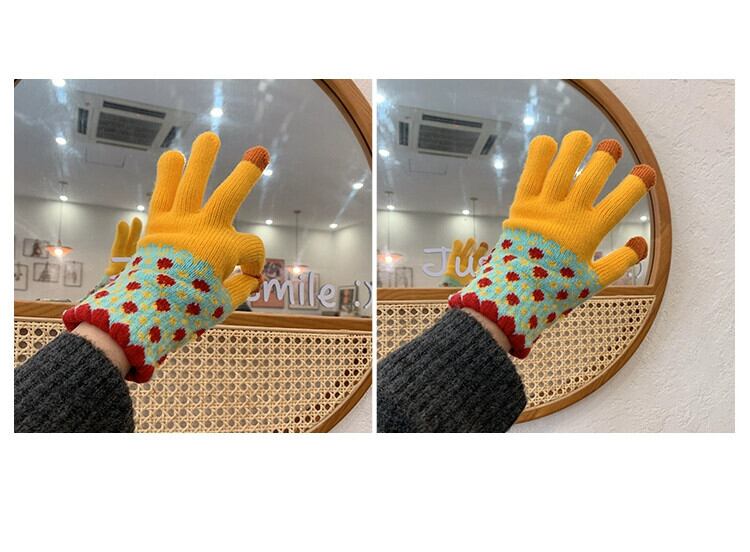 手袋 冬用 女性用 厚手 プラス ベルベット 5本指 学生 かわいい ウール ニット 防寒 サイクリング 画面にタッチして暖かいサイクリングを保つことができます 大人ガーリー スウィート キュート カジュアル ウィンター 冬物 15dd6259598243