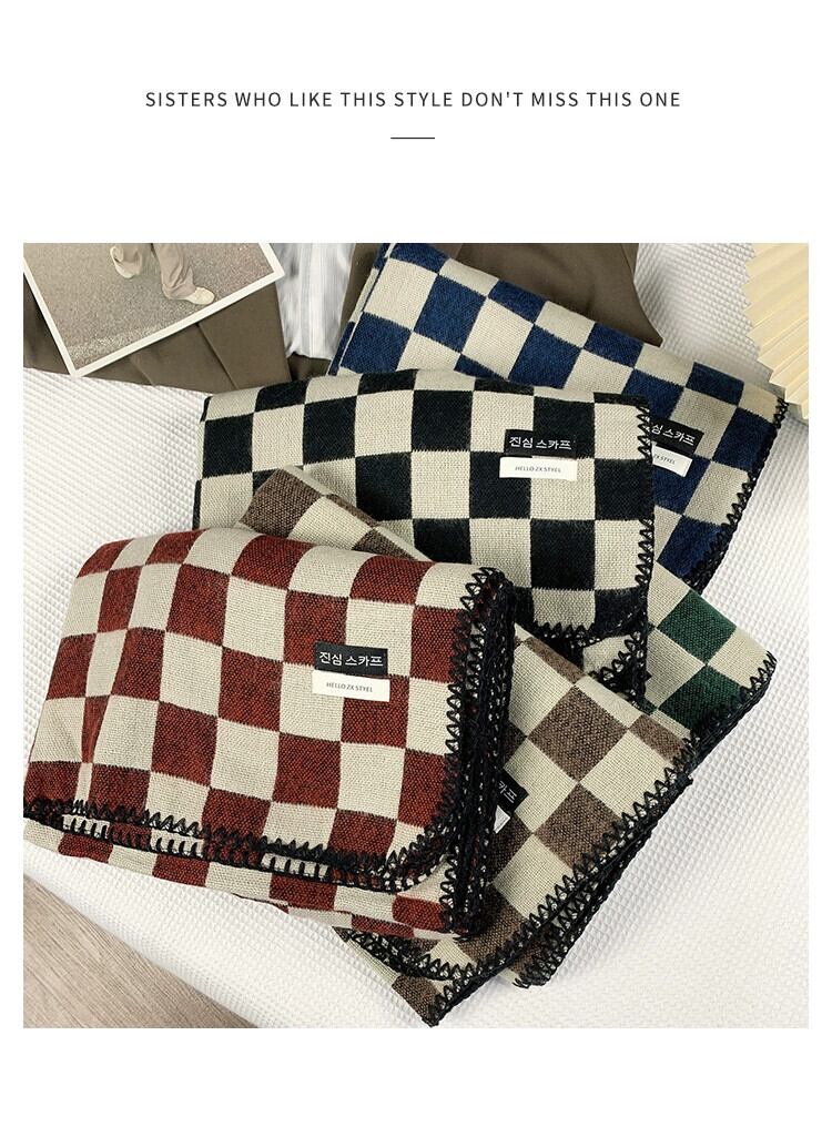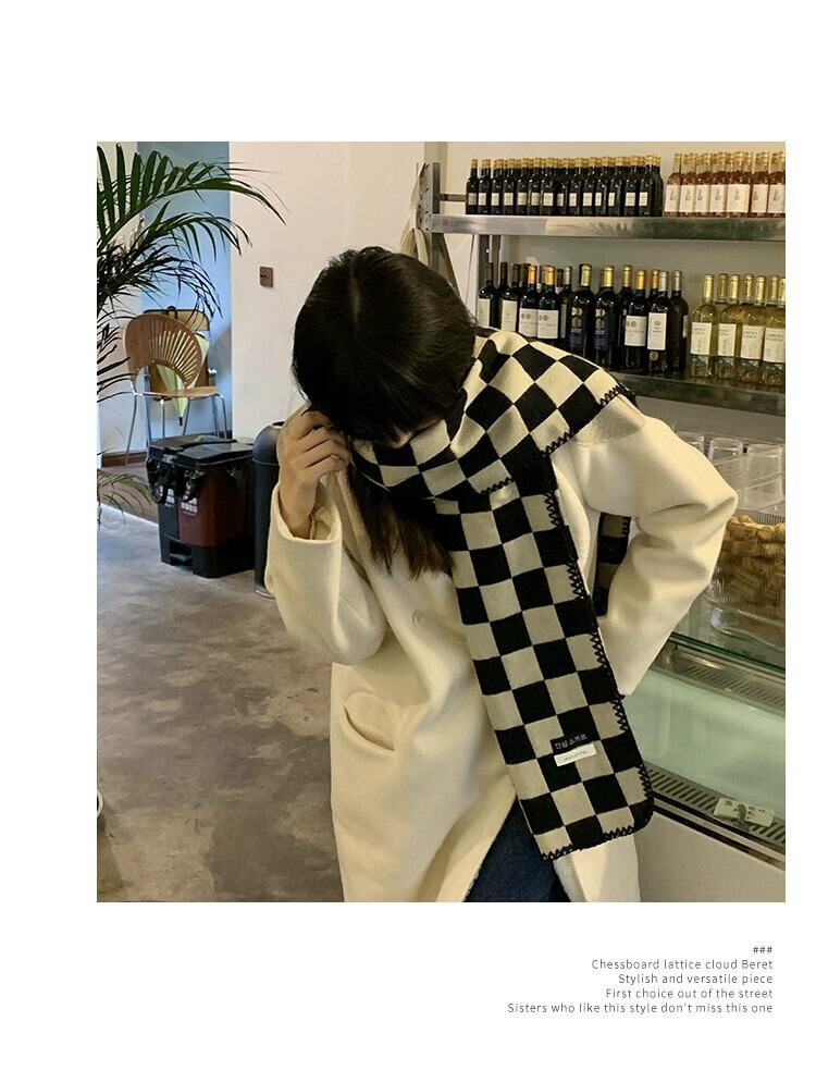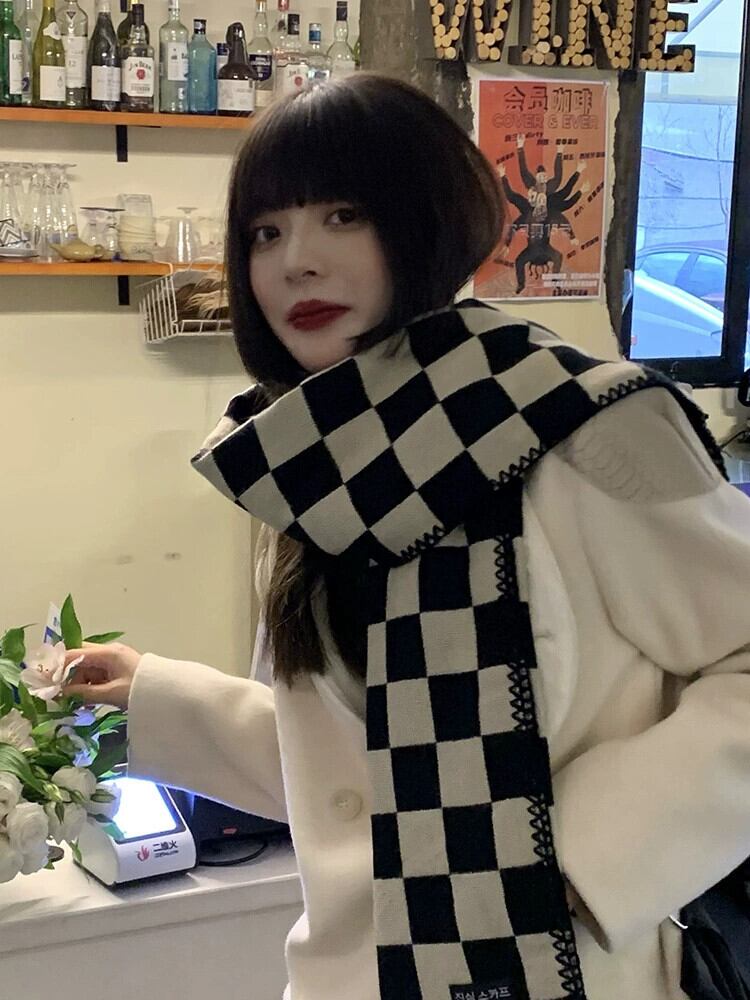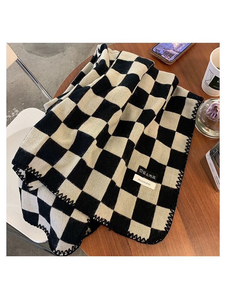 黒と白の市松模様のスカーフ女性の冬のオールマッチ学生暖かいニッチ 2022 新しいニット模造カシミヤスカーフ ホワイト ブラック ウィンター 冬物 15dd38634779272