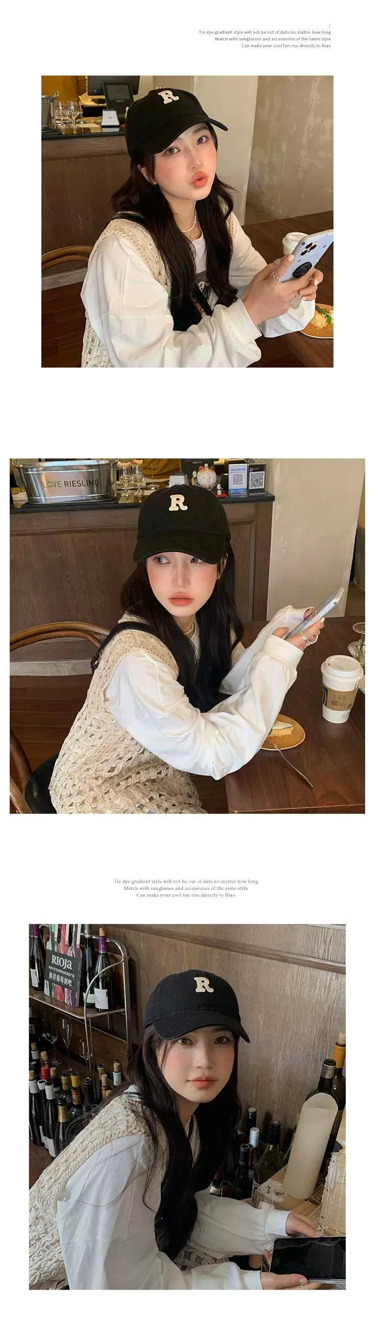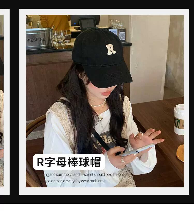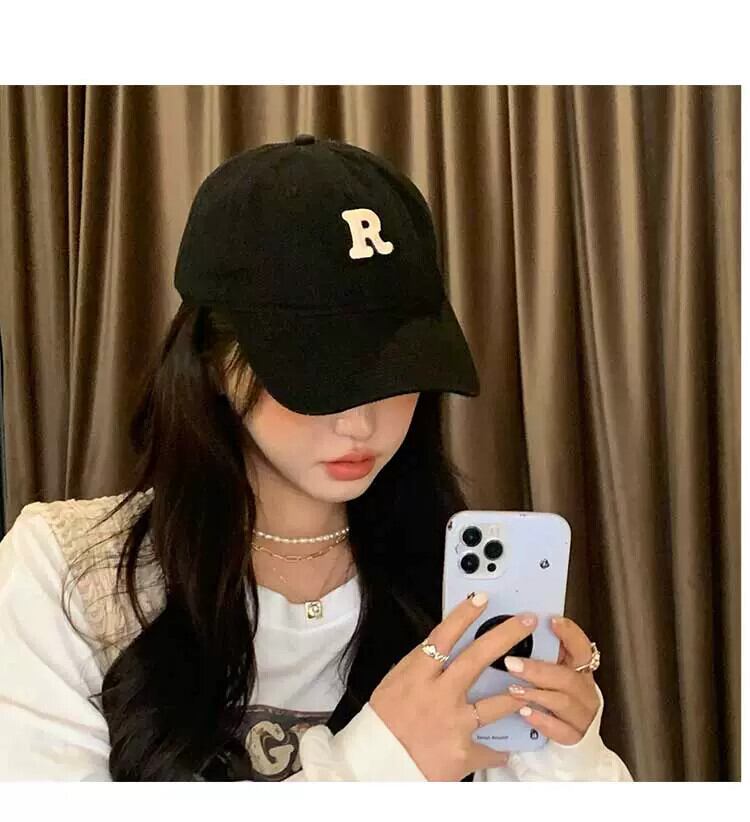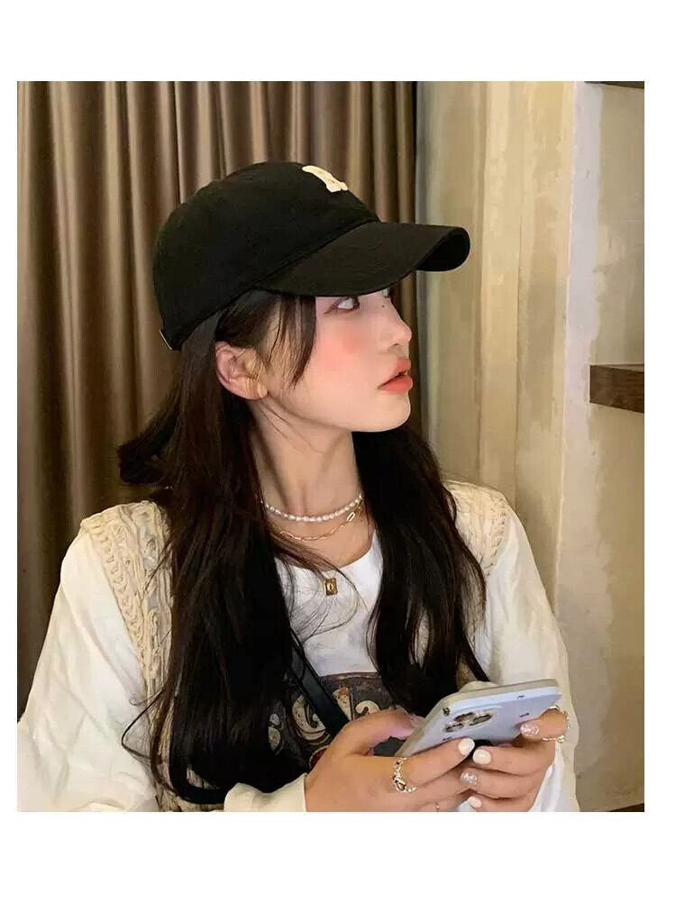 大きな頭と湾曲したひさしが顔を出す小さな野球帽女性 R スタンダードアメリカンレトロトレンディなカップル黒のオールマッチひさしキャップ ブラック 15dd73944714349