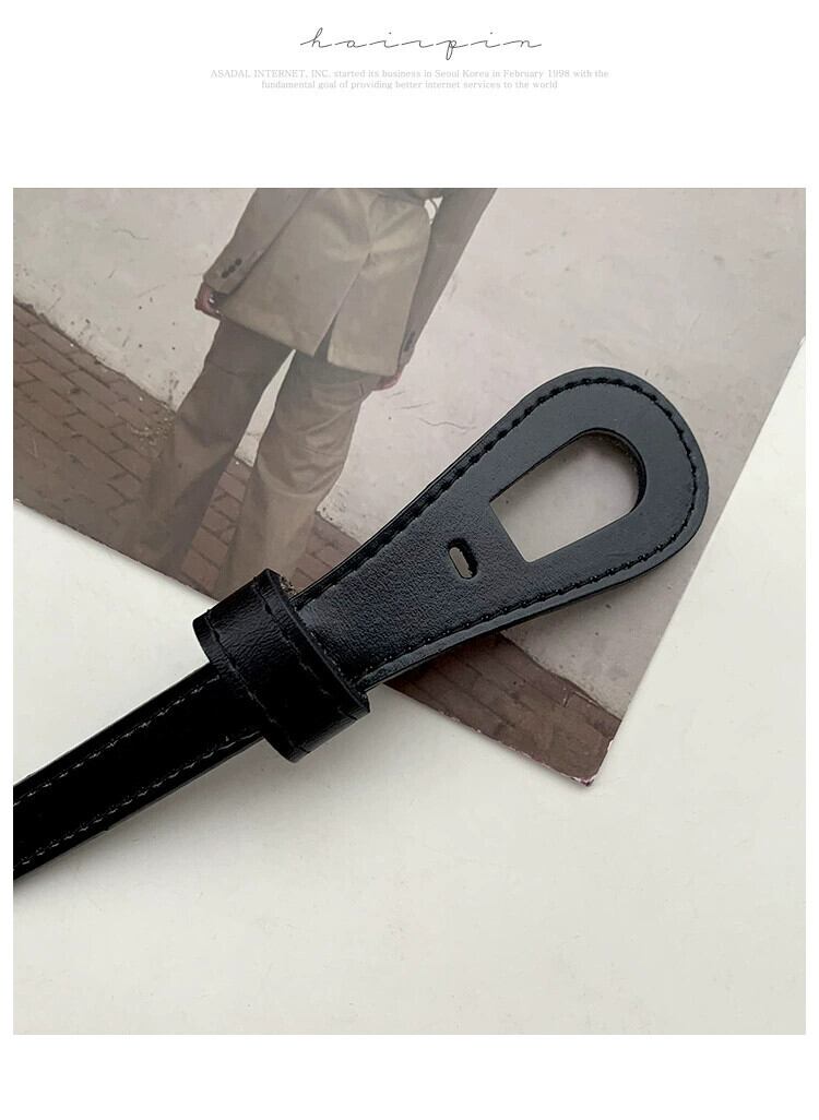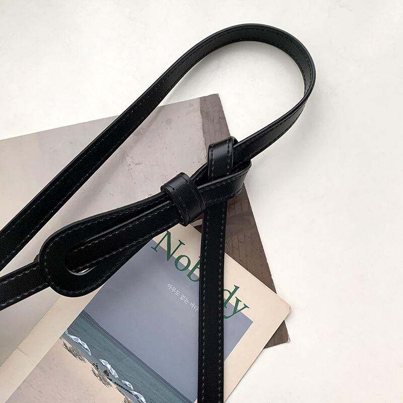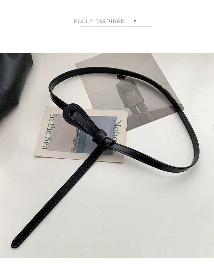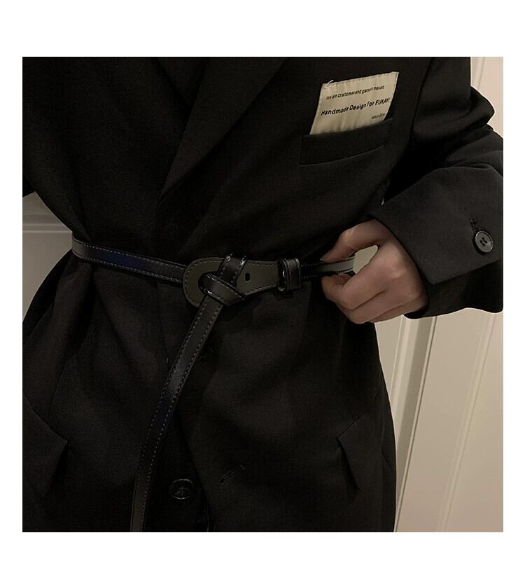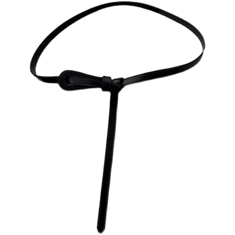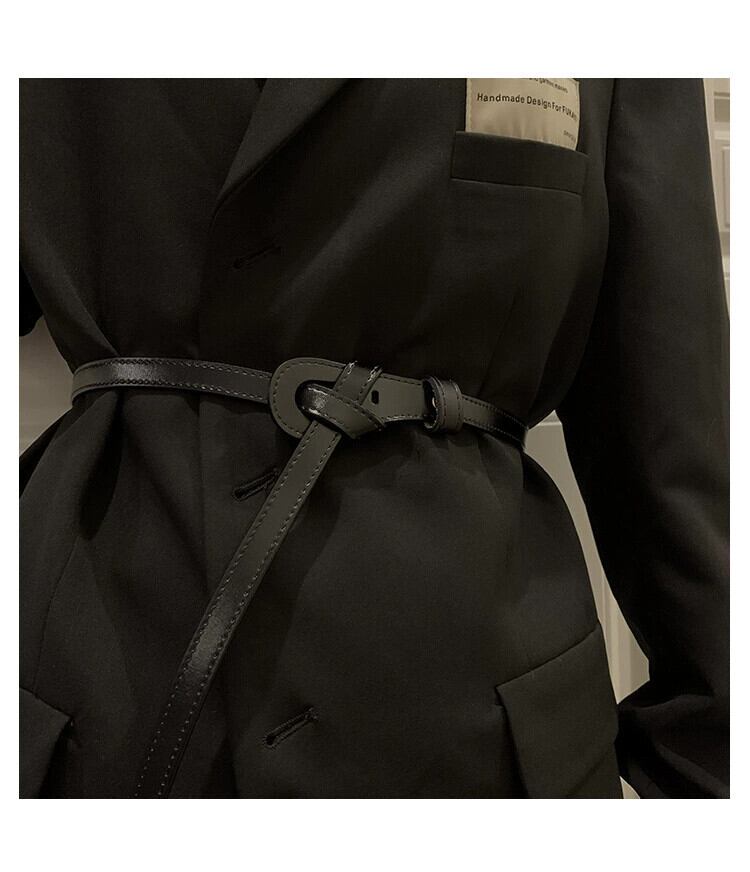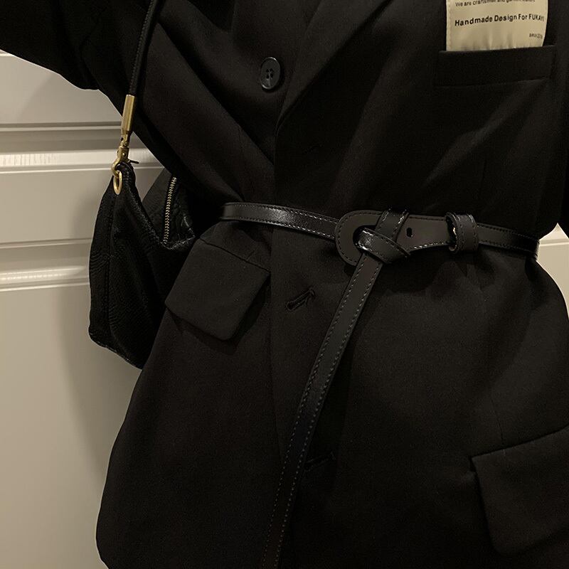 ワンピースと細ベルト付きレディース革結び目飾りスーツウエスト牛革オールマッチコート小黒ベルト ブラック レザー ハーネス 15dd32133545561