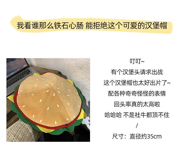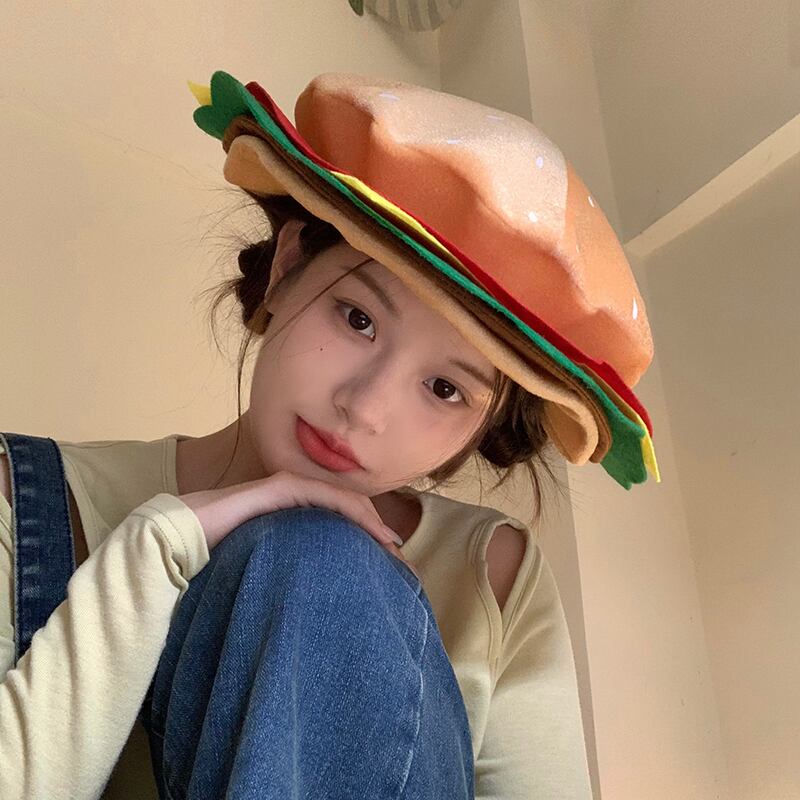 かわいい面白いハンバーガーハット女性ネットレッドクリエイティブインベレー帽漫画フードショーポーステージ帽子潮 大人ガーリー スウィート キュート カジュアル ベレット ヘアアクセサリー 15dd54847550346