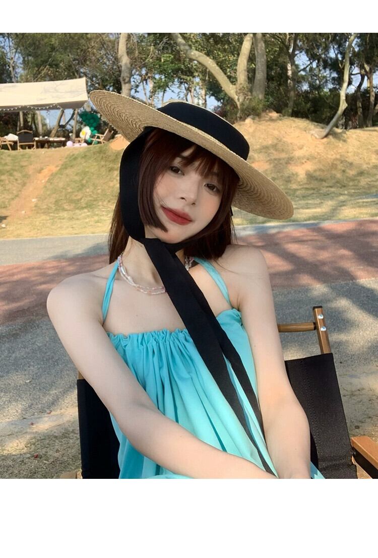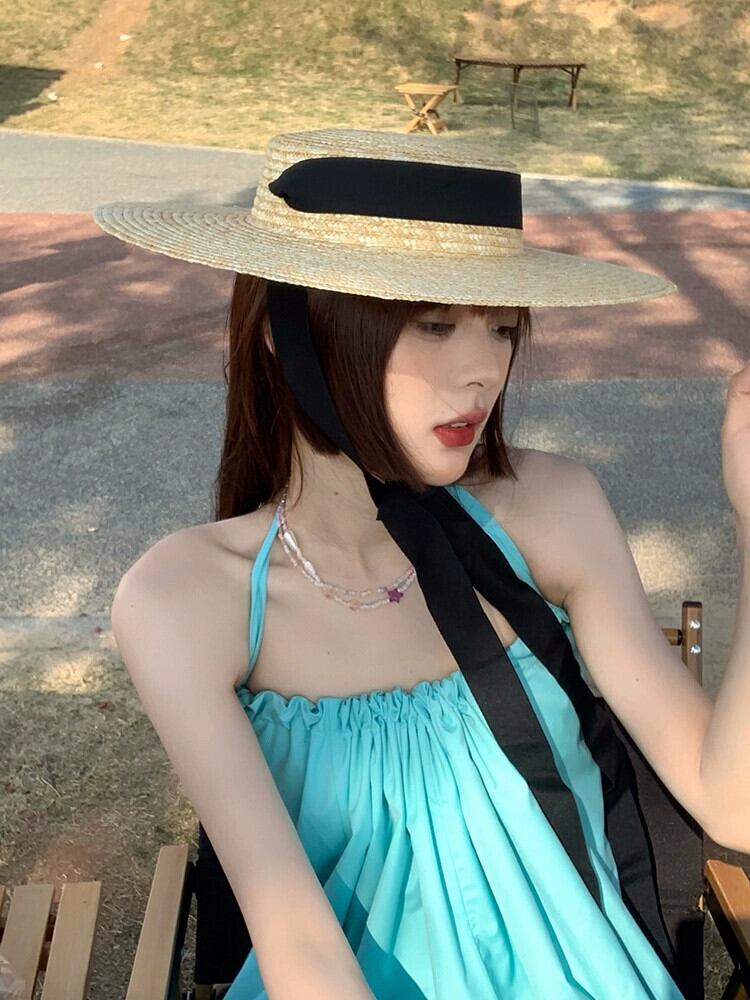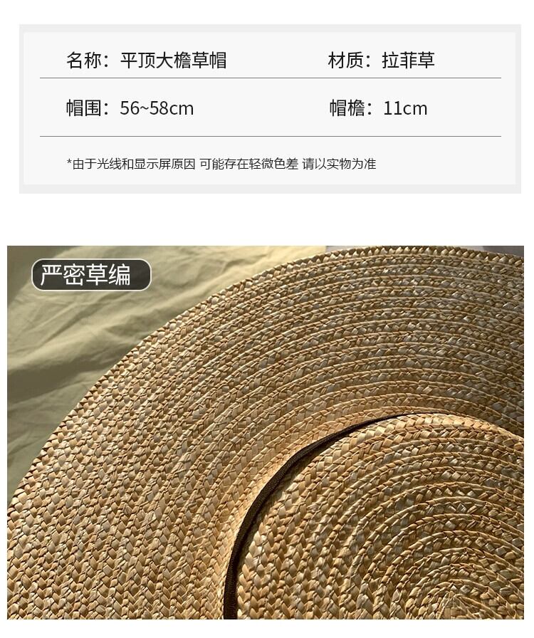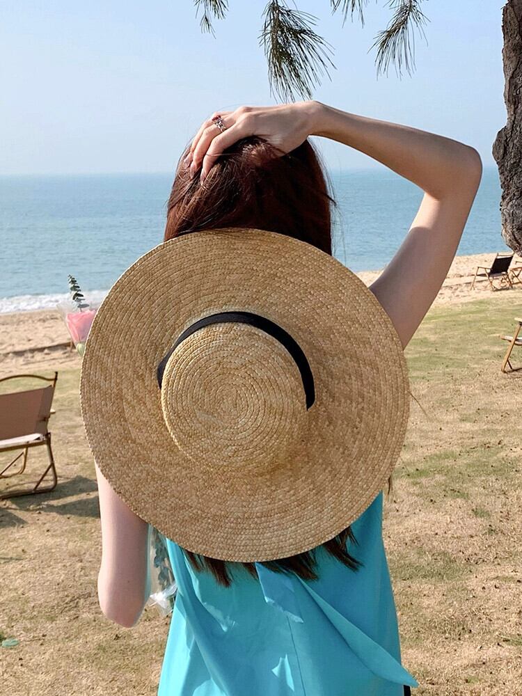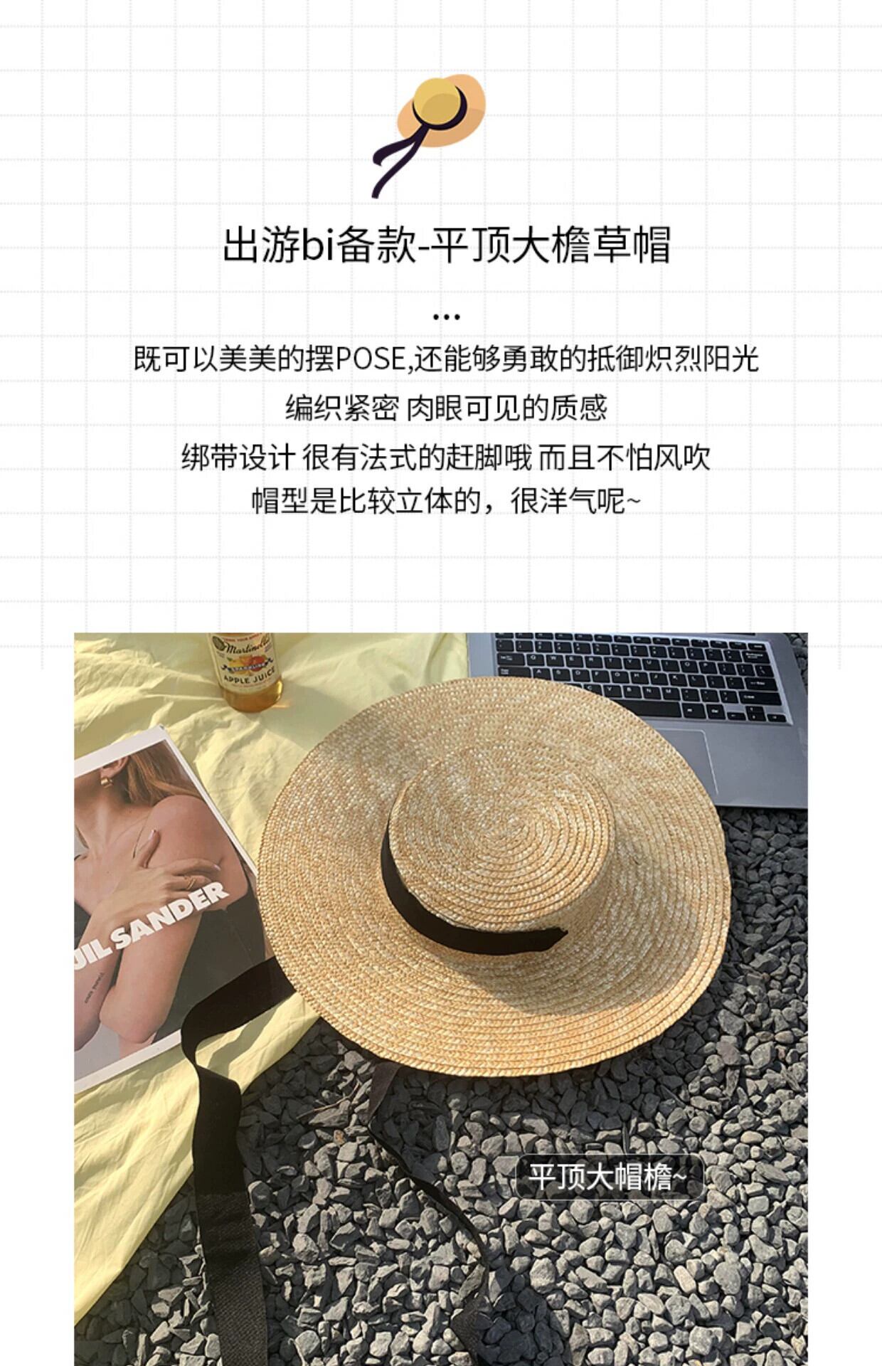 フラット麦わら帽子女性の夏ラフィアファッション大きな軒日焼け止め太陽の帽子太陽の帽子休暇インビーチ帽子 サマー 夏物 15dd13486982847