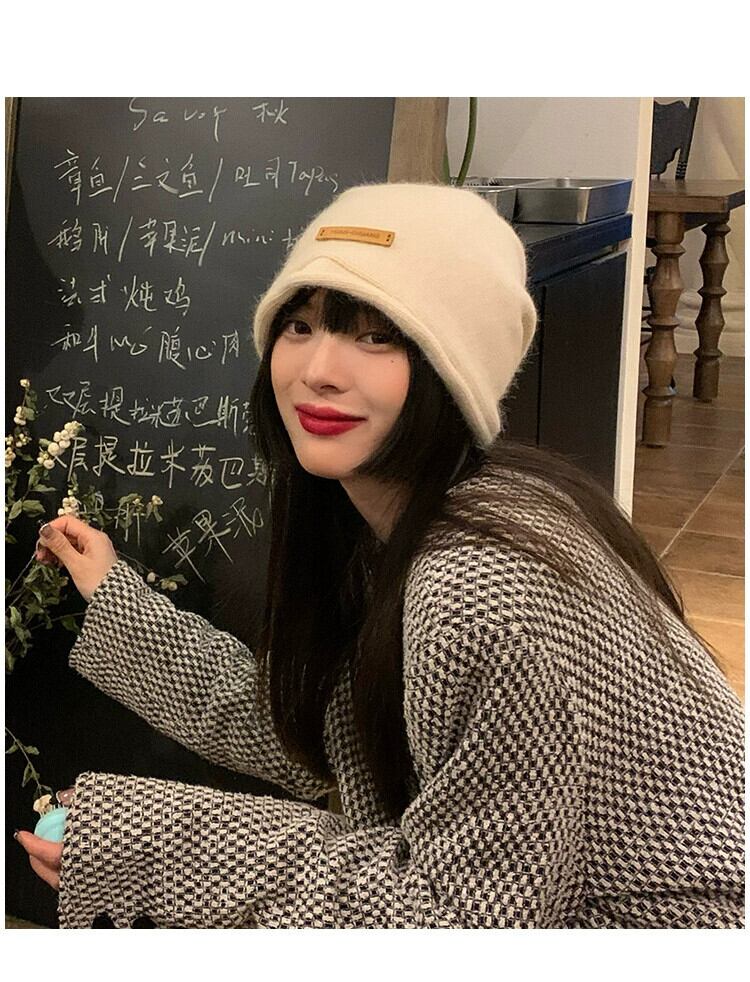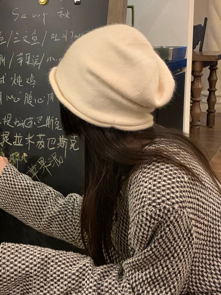 大きな頭囲ニットパイル帽子女性の秋と冬オールマッチウール帽子冬のファッション暖かい耳保護コールド帽子監禁帽子 オータム 秋物 ウィンター 冬物 15dd12028109877