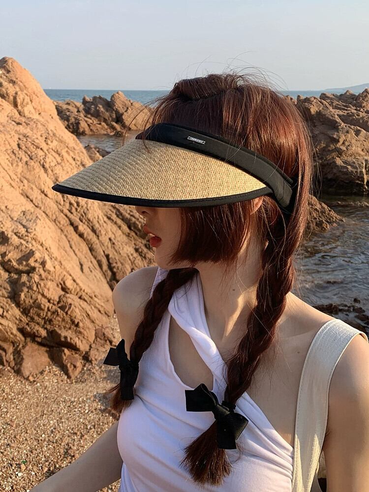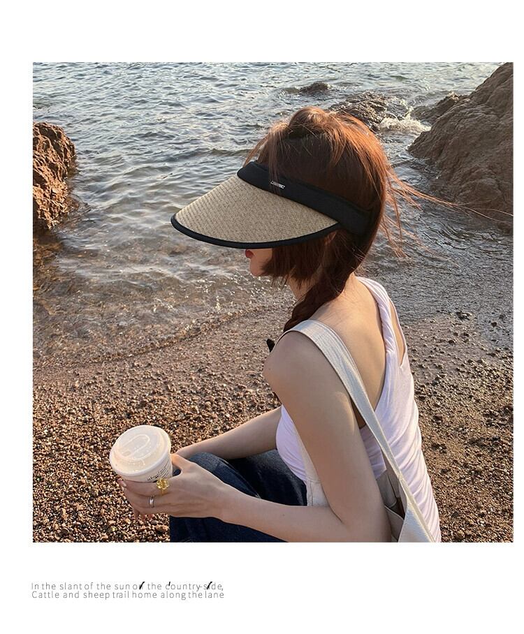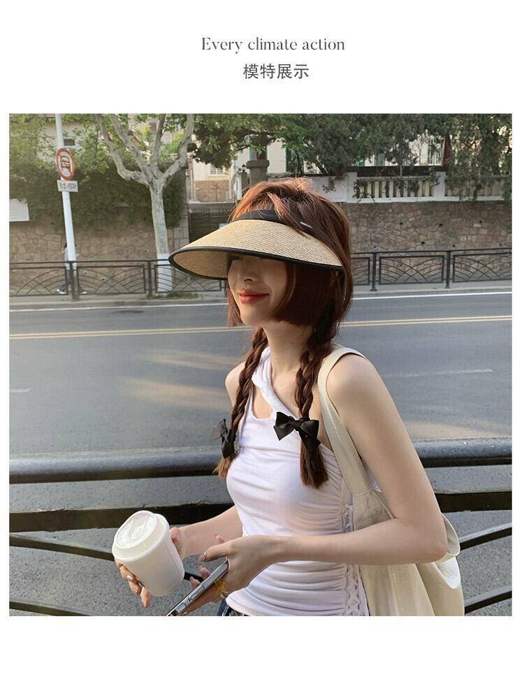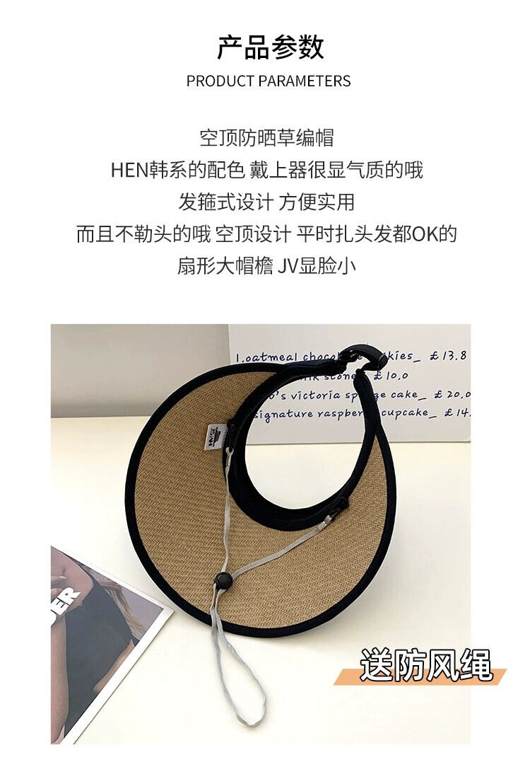 わら空トップサンハット女性の夏の麦わら帽子抗紫外線大きなひさしカバー顔日よけ帽子屋外サンバイザー潮 サマー 夏物 15dd49469016552