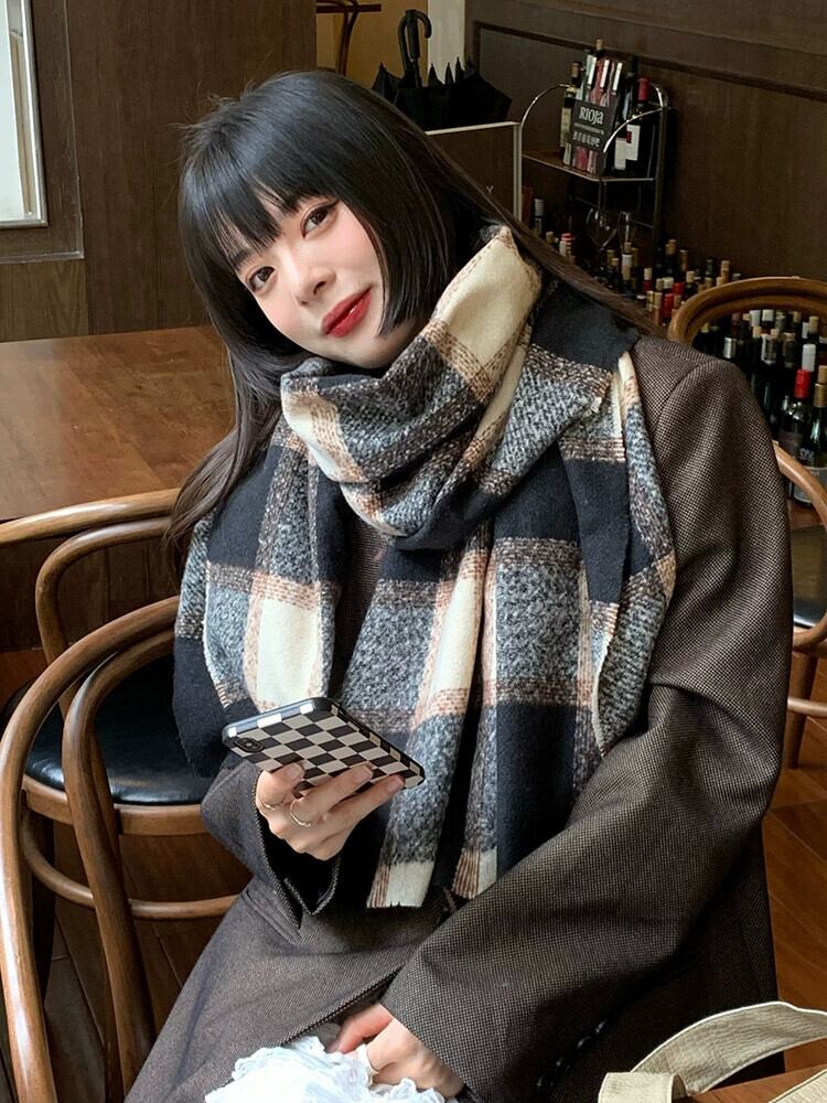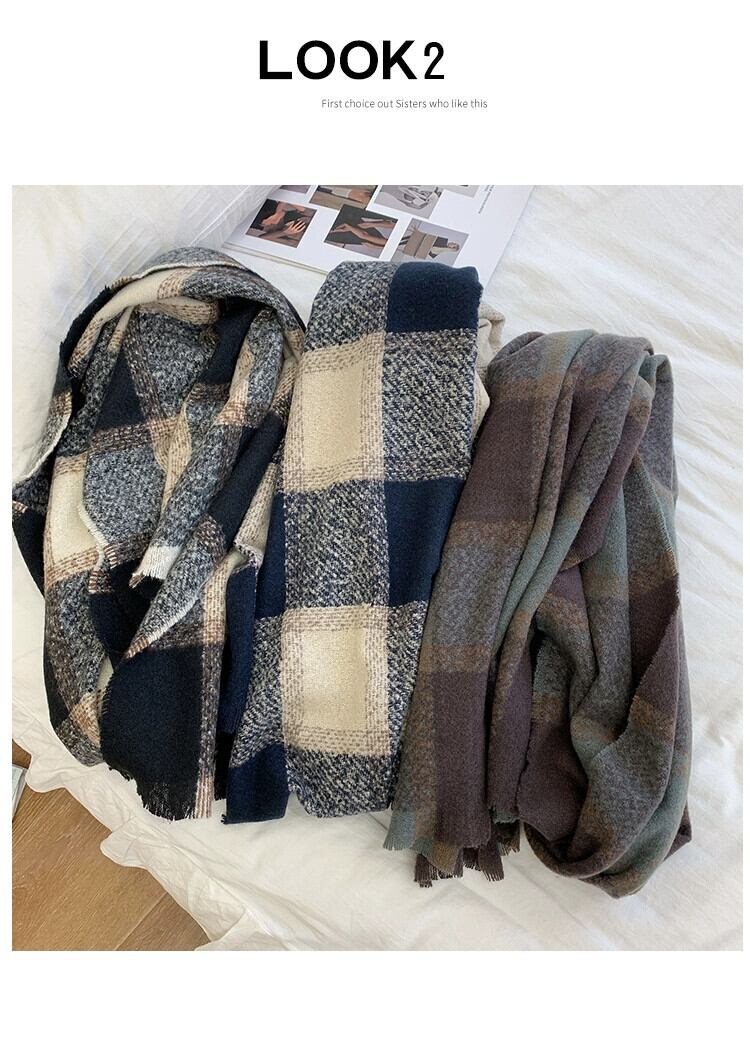 スカーフ女性の冬の気質オールマッチエサチェック柄模造カシミヤショール秋と冬の学生は暖かく保つ厚いスカーフメンズファッション オータム 秋物 ウィンター 冬物 15dd22928126861