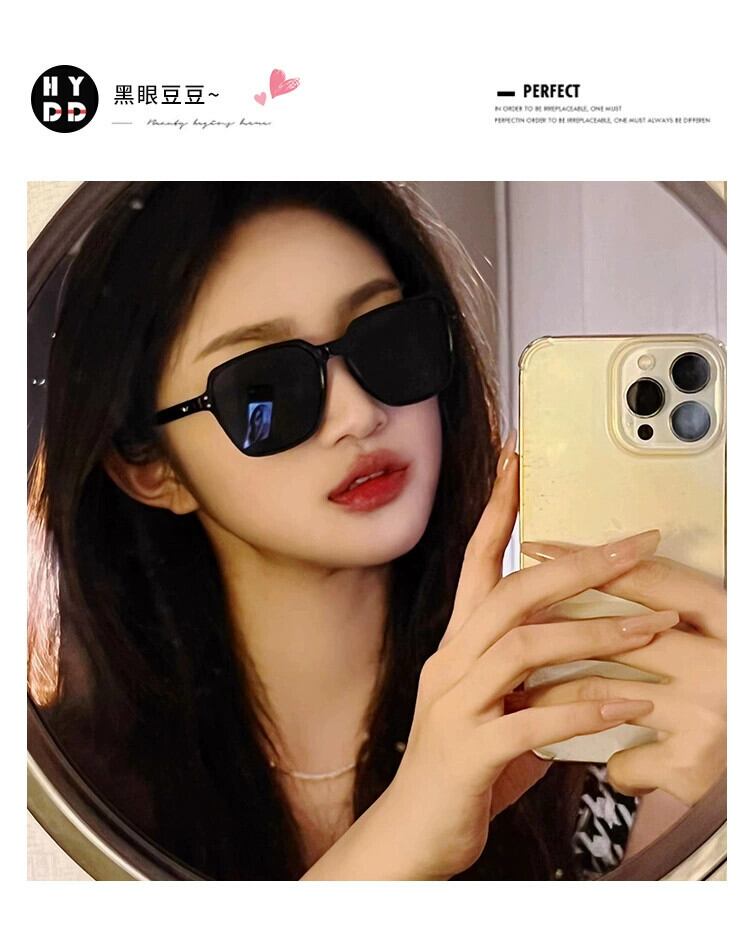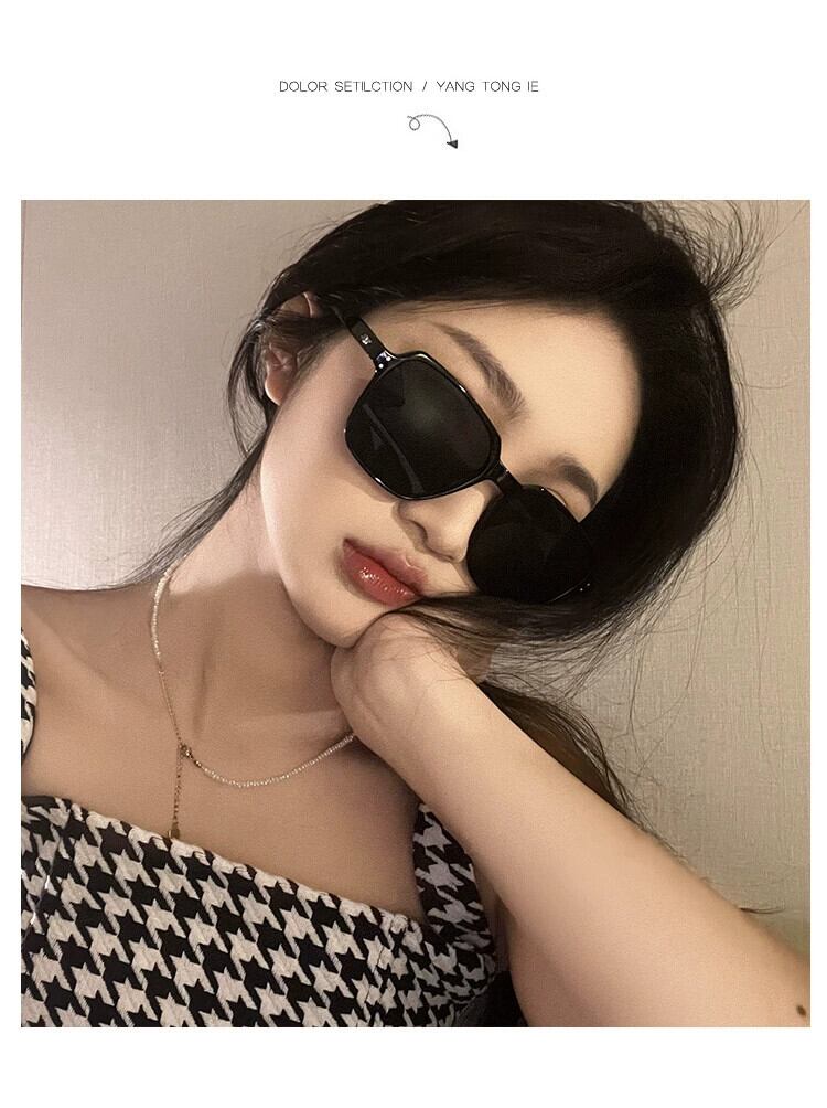 黒の正方形のフレームのサングラス女性イン潮ファッションレトロ夏運転日焼け防止 UV サングラス ブラック サマー 夏物 スクウェア 15dd50264554748
