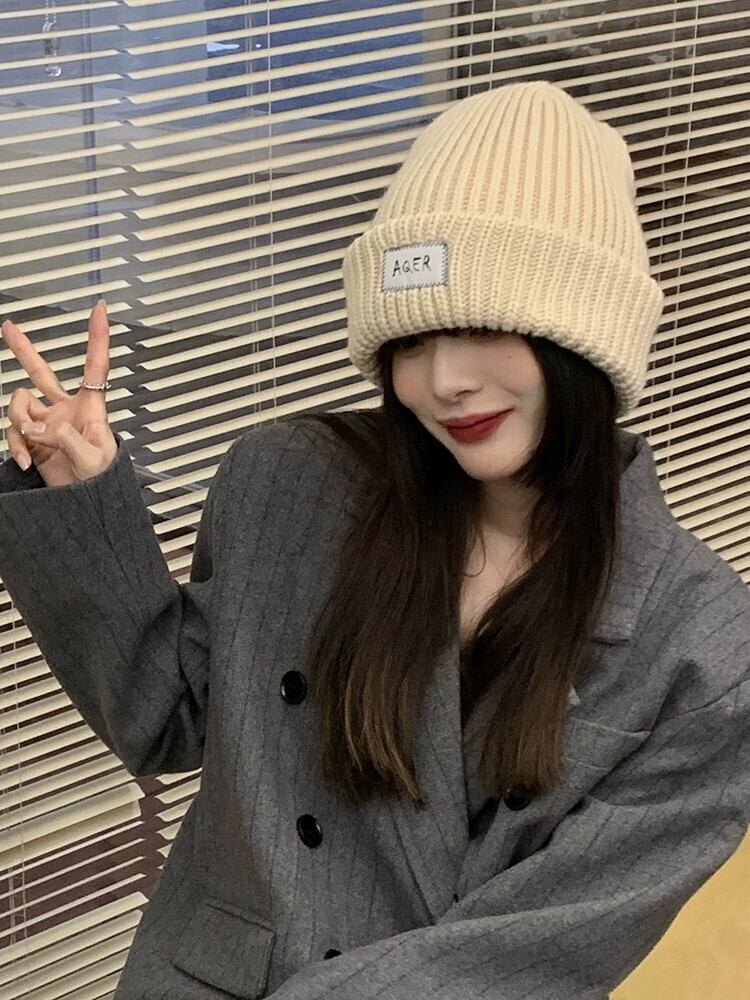 大きな顔見せ顔小さなウールの帽子ルーズ帽子女性の秋と冬の防寒帽子大きな頭囲暖かい厚いニット帽冬の潮 オータム 秋物 ウィンター 冬物 15dd72935092194