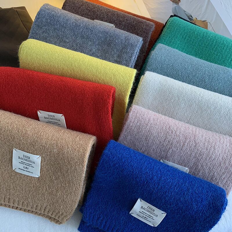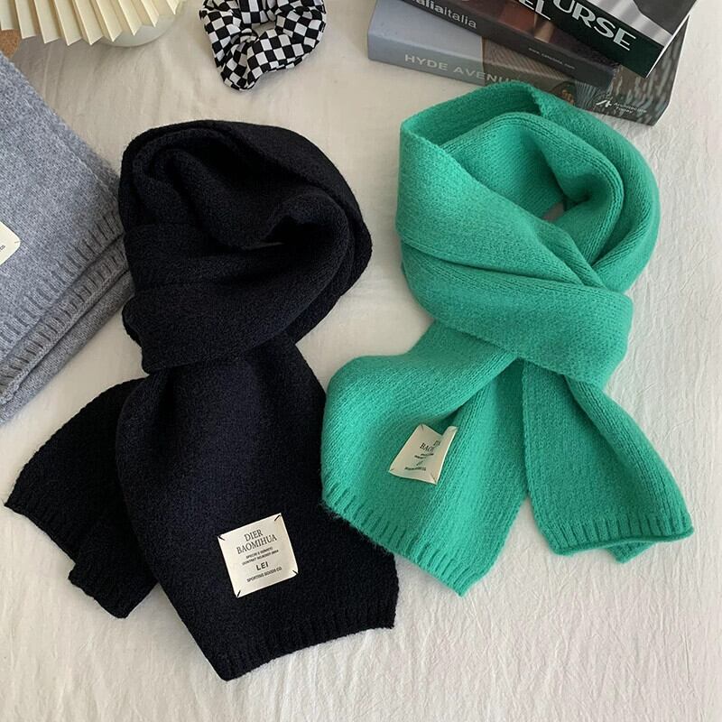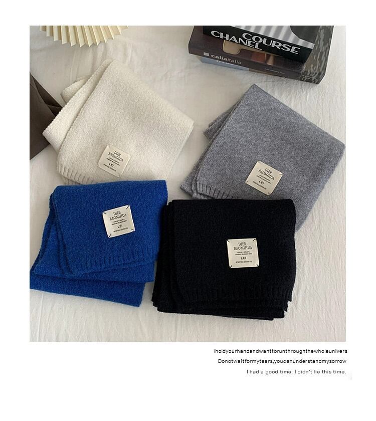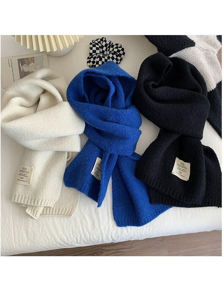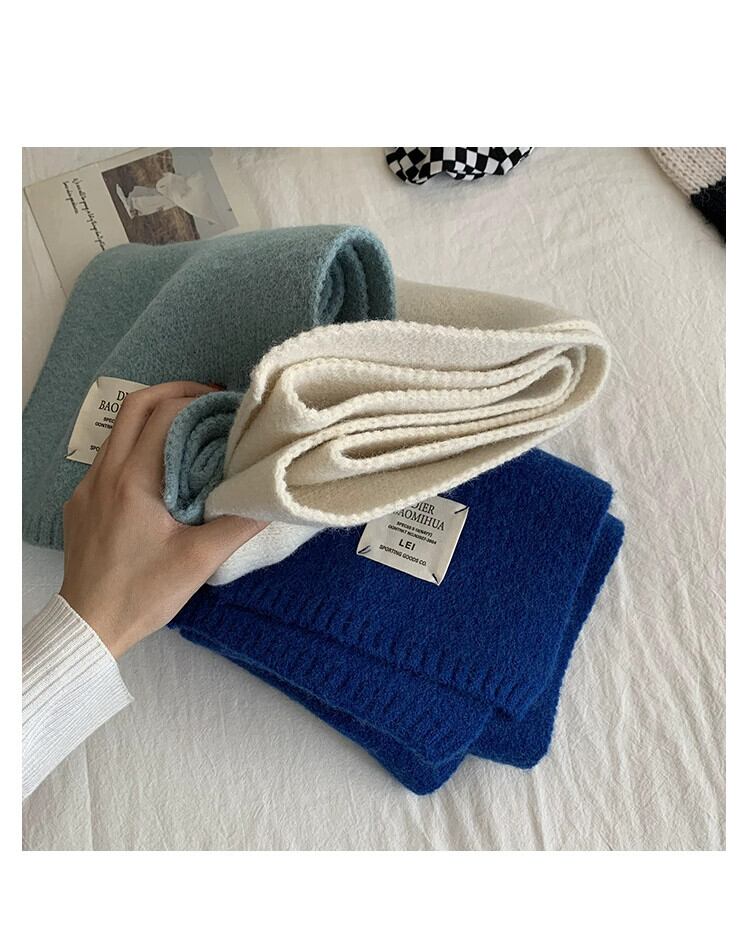 インスタイルソリッドカラースカーフ女性冬ウール学生ショー白いスカーフ新しいニットラベル暖かい男性 ホワイト ウィンター 冬物 15dd9463291531
