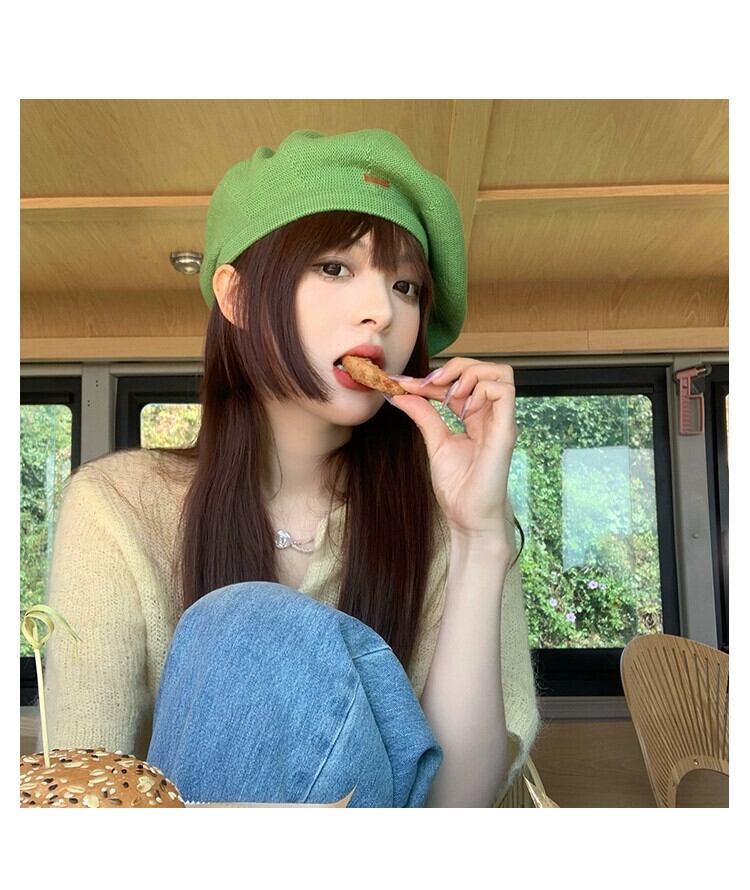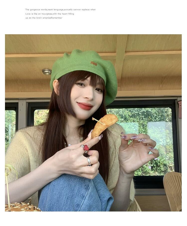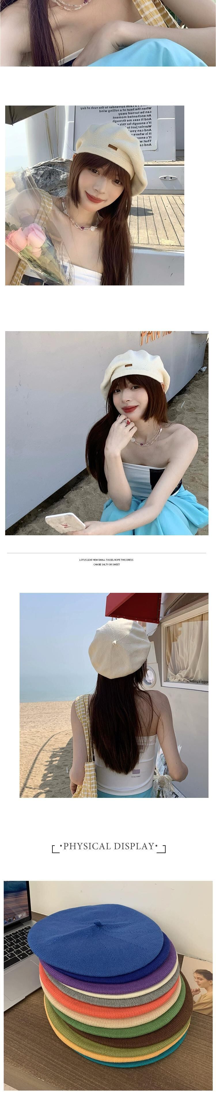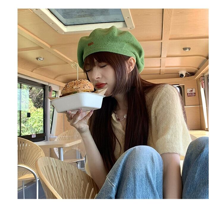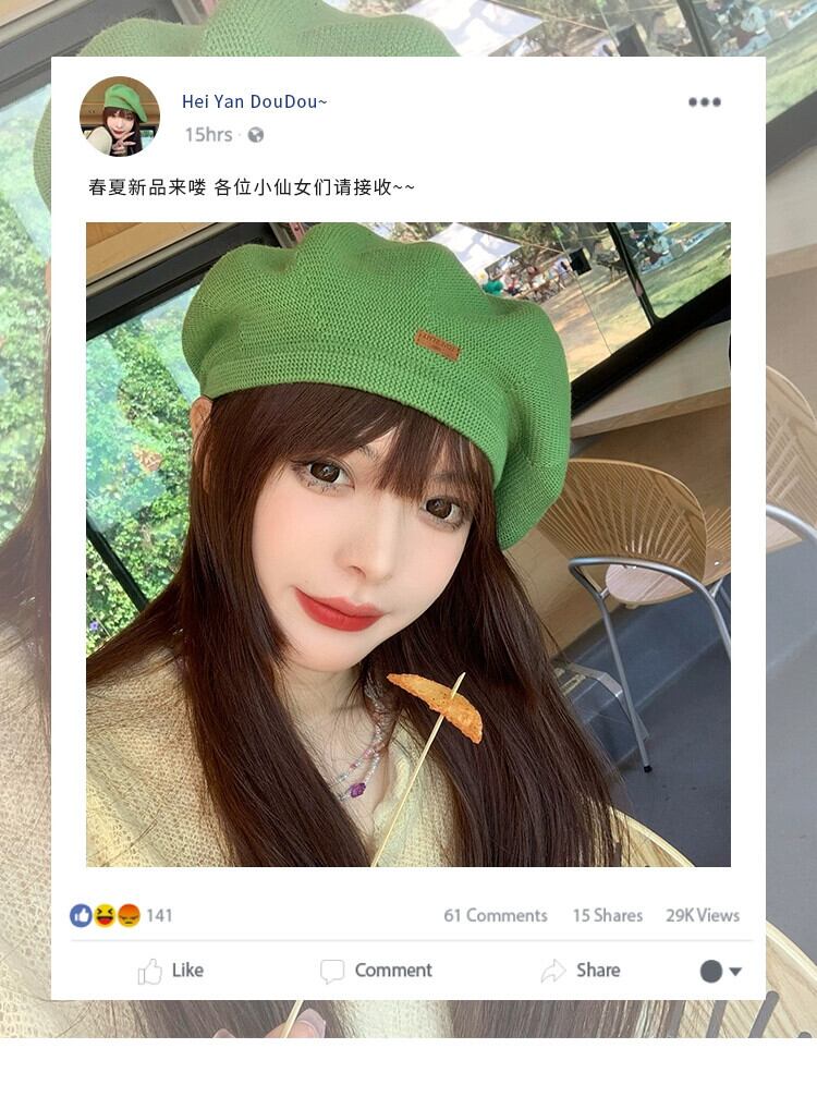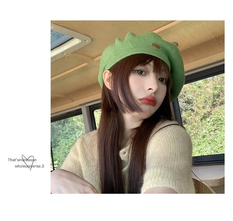 ネットレッドインショーフェイススモールレザースタンダードオールマッチベレー帽春と夏の女性の薄いセクション通気性のある新しいニットペインターハットのバージョン 帽子 スプリング 春物 サマー 夏物 ベレット ヘアアクセサリー 15dd18129643401