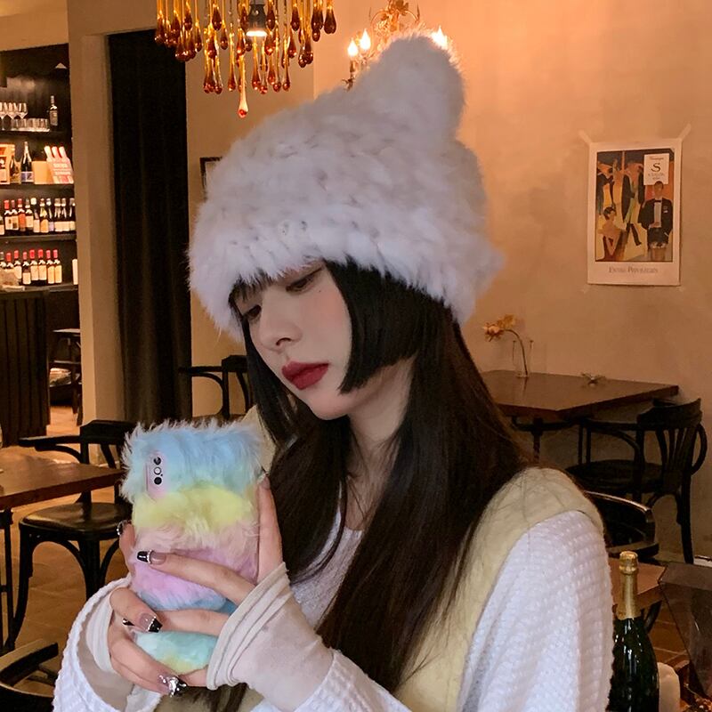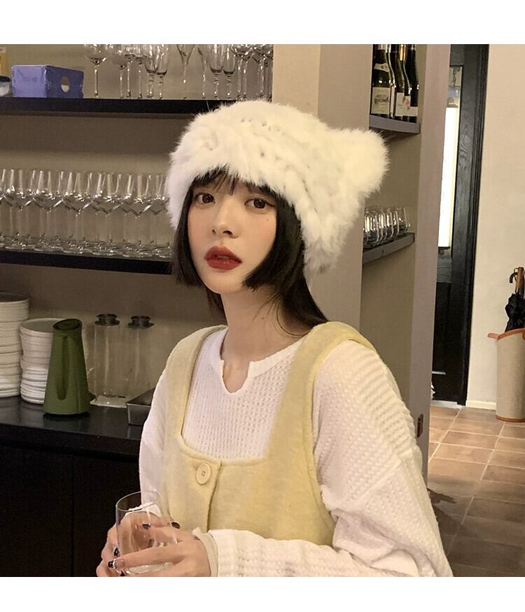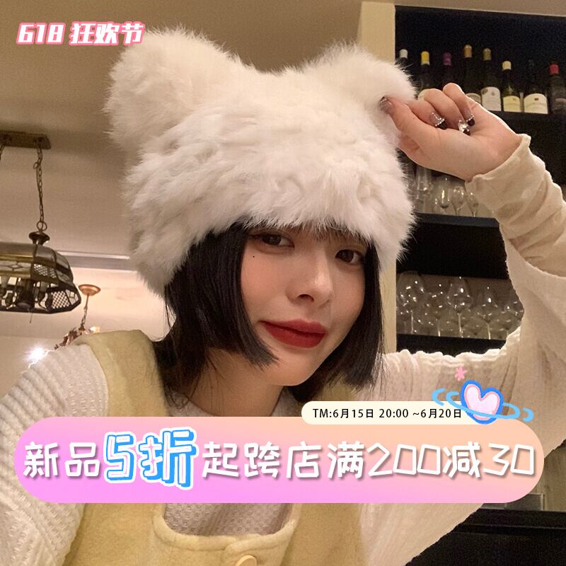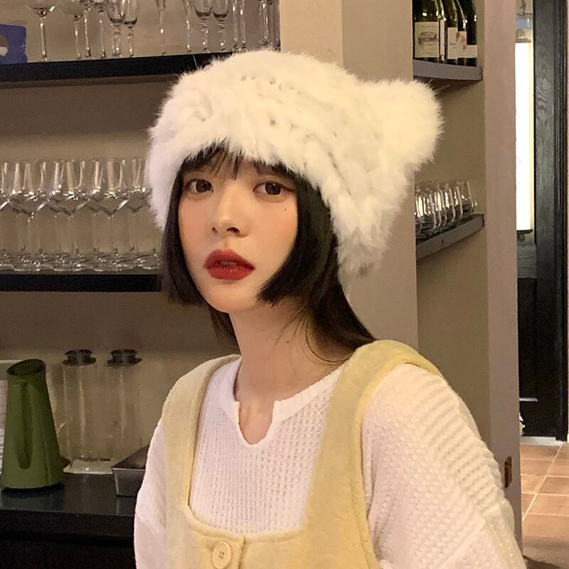 クマの耳リアルウサギの毛皮の帽子女性の冬のウールの帽子肥厚防寒暖かい豪華な毛皮の帽子豪華な毛皮の帽子 ウィンター 冬物 15dd31528986200
