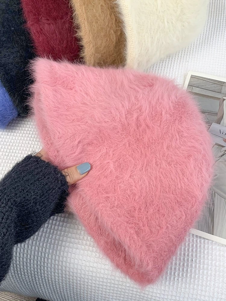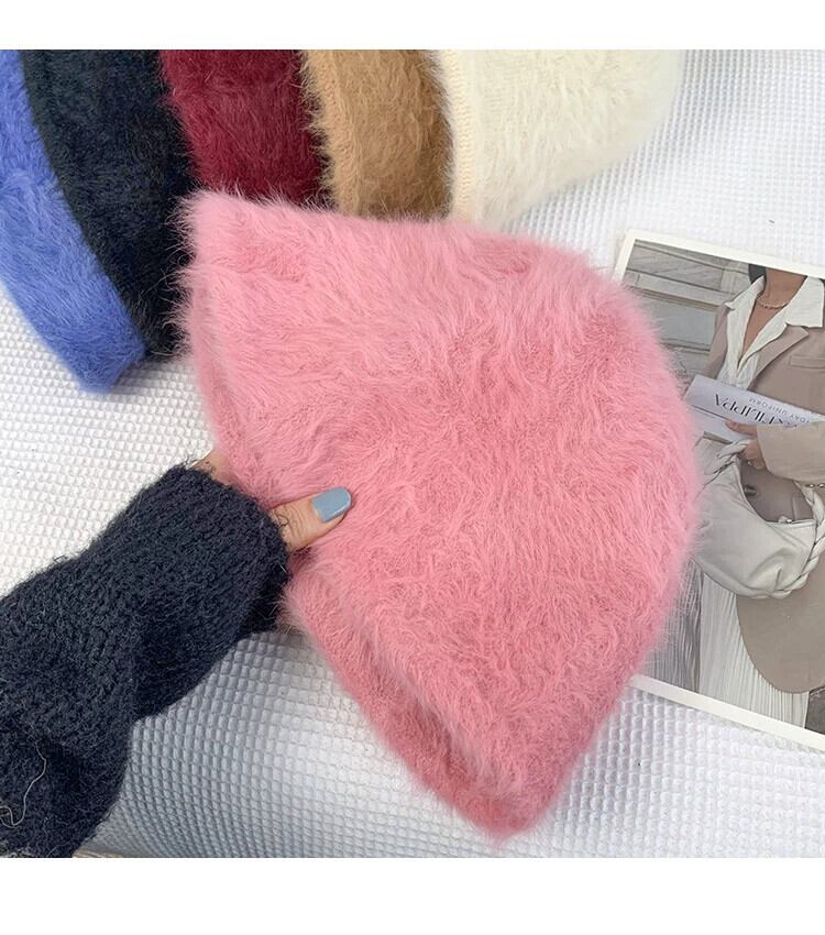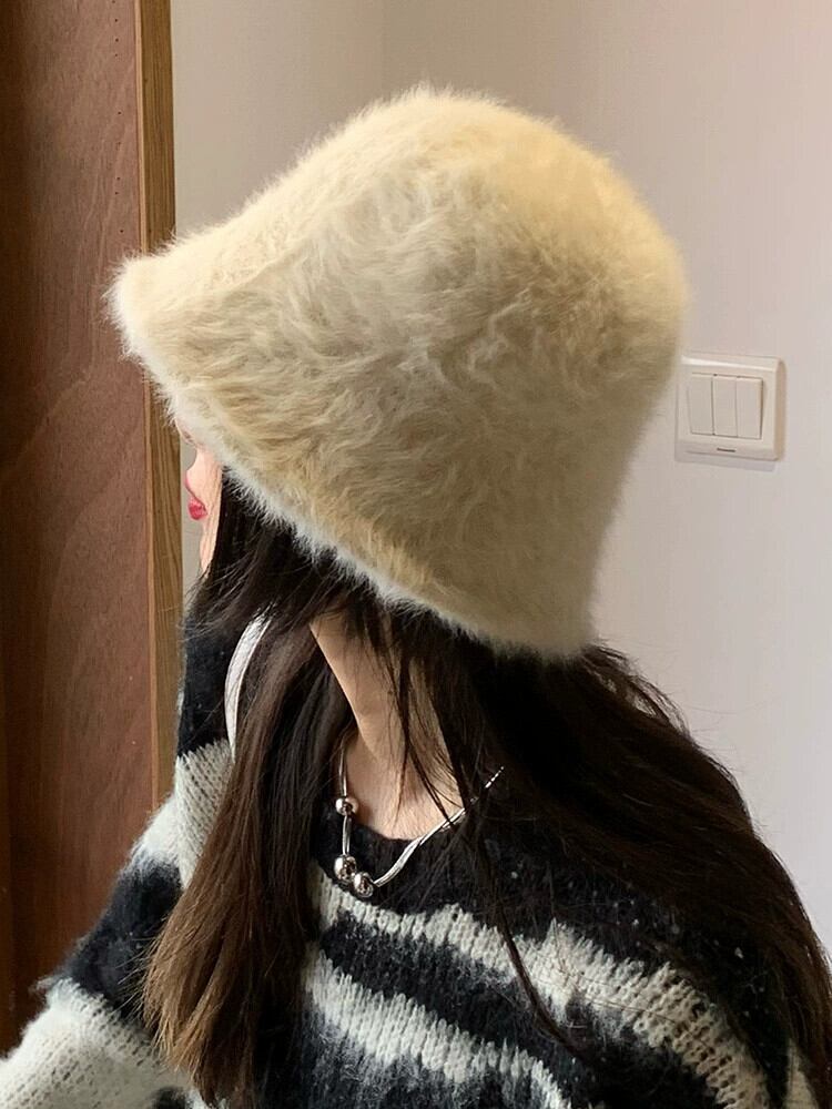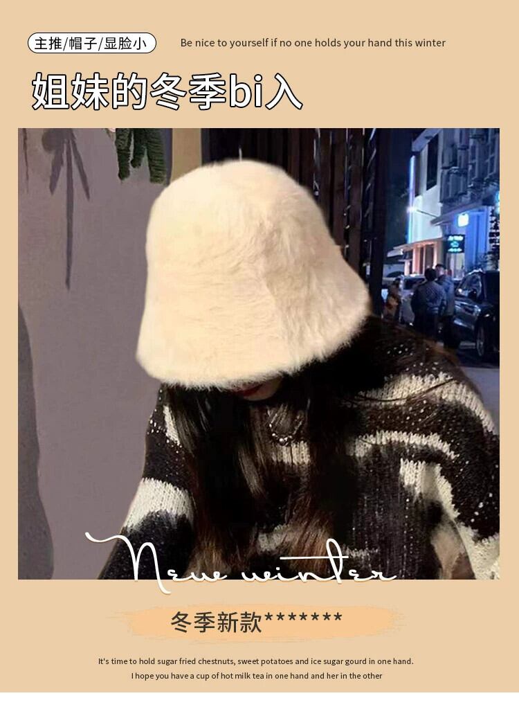 顔見せ小さなウサギの毛皮の漁師の帽子女性の無地の顔オールマッチ保温フェイスネット赤の毛皮のような盆地帽子トレンディな レッド 15dd29589614282