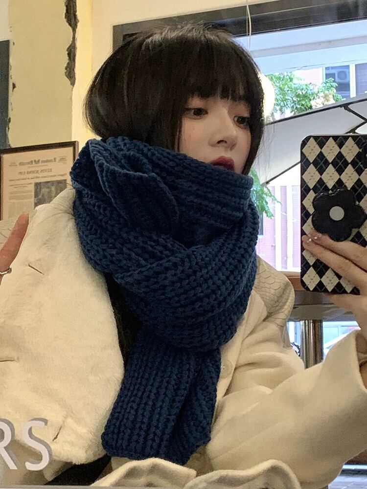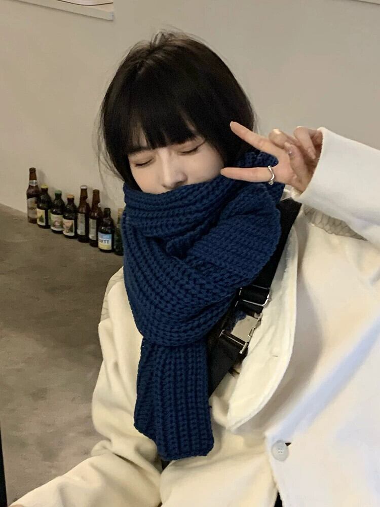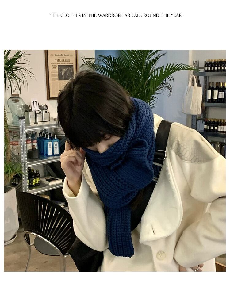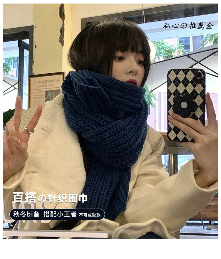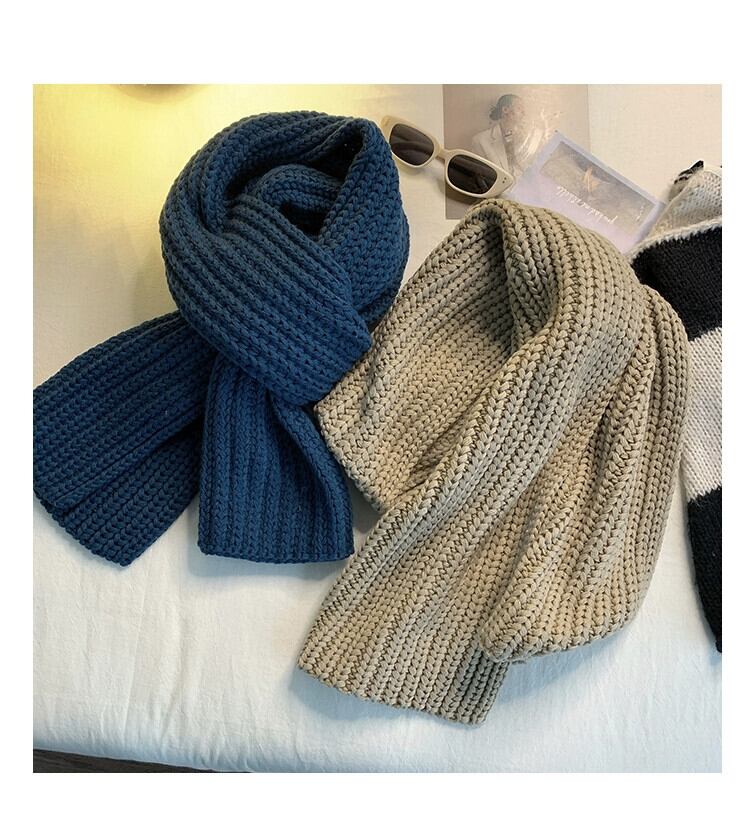 スカーフ レディース 冬バージョン オールマッチ ソリッド カラー レトロ 秋冬 学生 厚く暖かい ウール ニット カップル スカーフ トレンディ オータム 秋物 ウィンター 冬物 ソリッドカラー 15dd58001535909