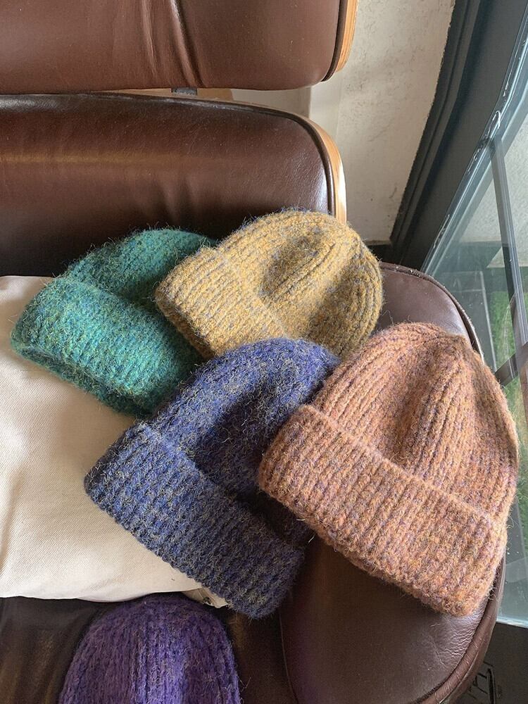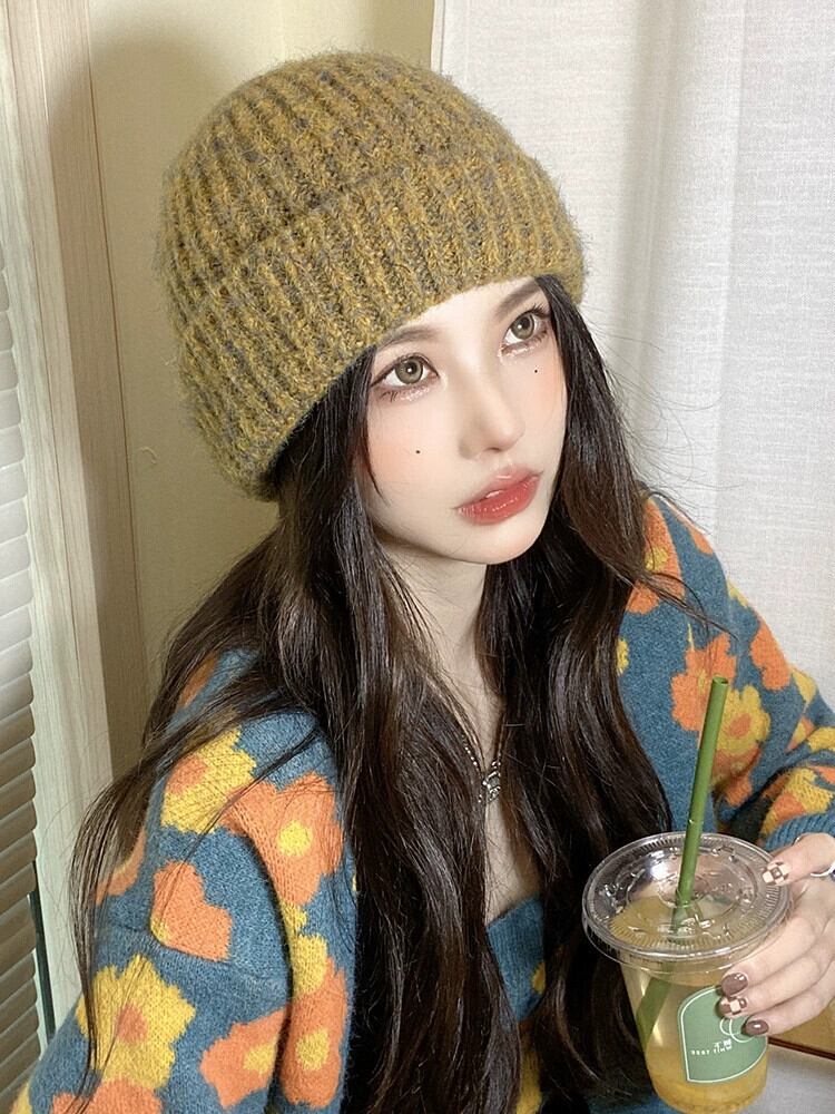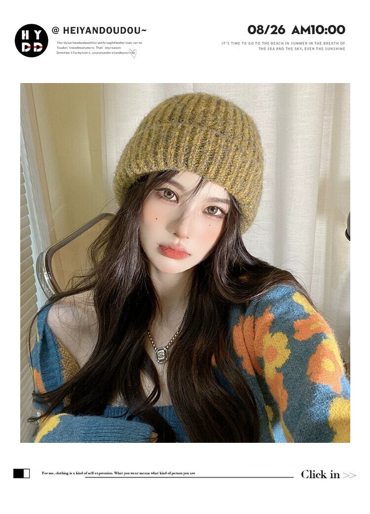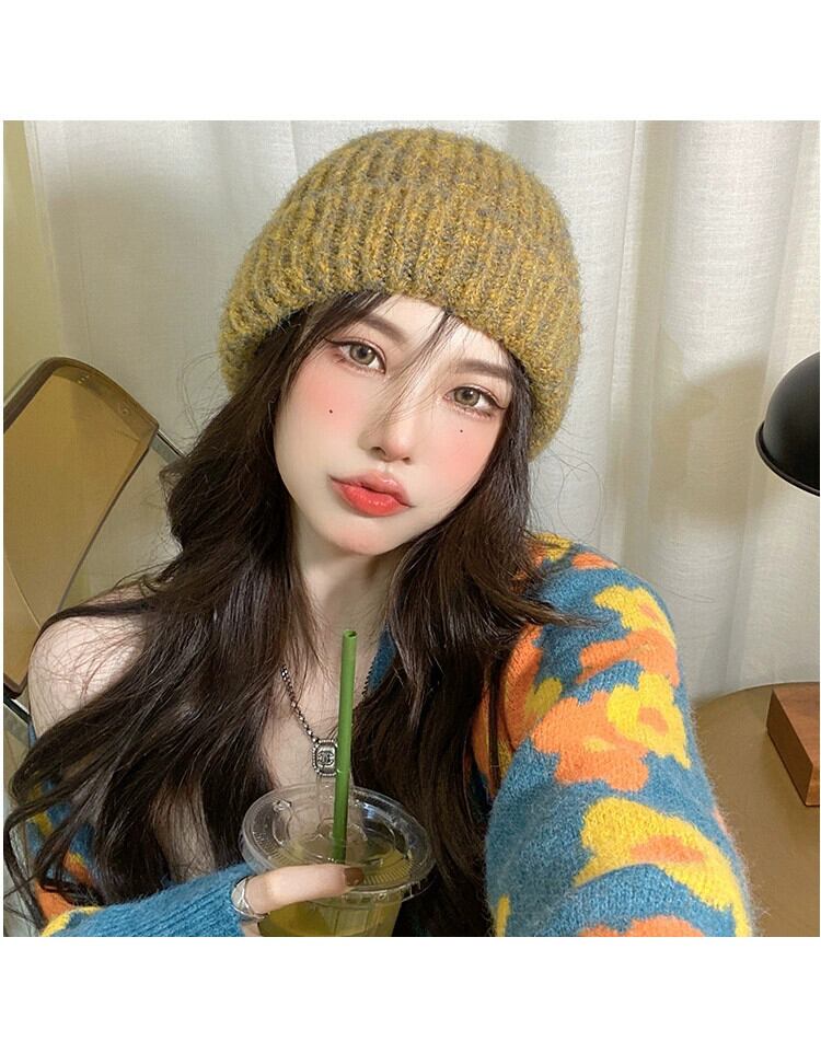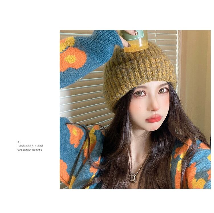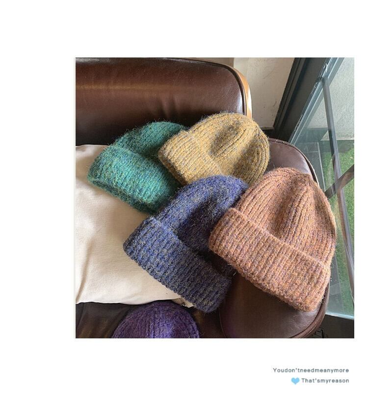 ニット帽女性の秋と冬のミックスカラーモヘア暖かい厚いファッションレトロウール帽子冬の耳の保護防寒帽子潮 オータム 秋物 ウィンター 冬物 15dd36034135456