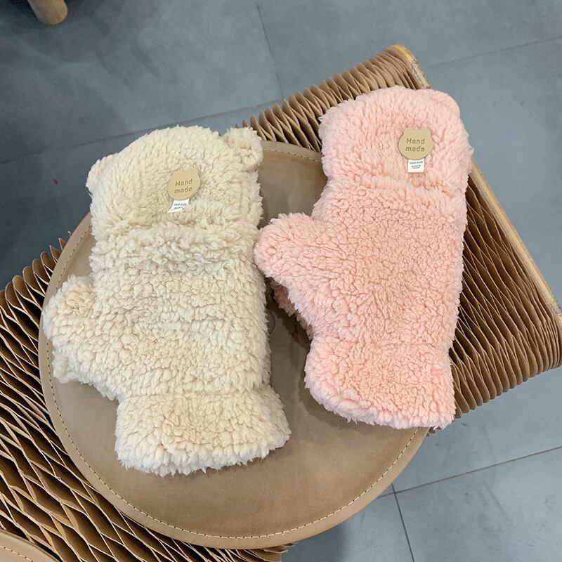 豪華な手袋女性冬インかわいいクマフリップカバー露を指す学生書き込みプラスベルベットを厚くして暖かく保ちます 大人ガーリー スウィート キュート カジュアル ウィンター 冬物 15dd67766761104