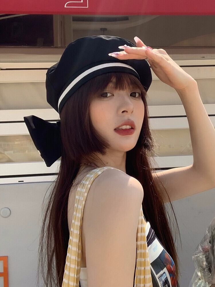 黒ベレー帽女性の夏薄いセクション 2022 新しいインネット赤いベレー帽デザインセンスニッチペインター帽子 レッド ブラック サマー 夏物 ベレット ヘアアクセサリー 15dd40923888850