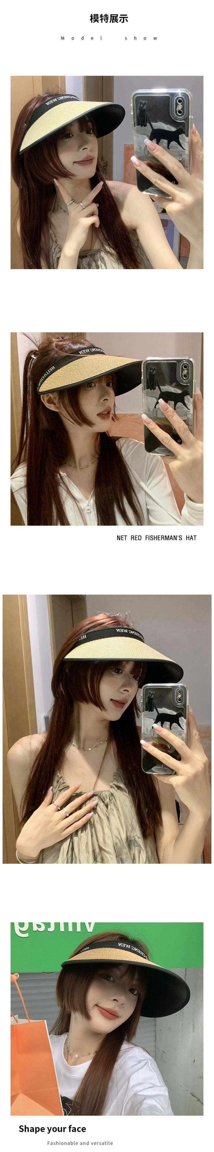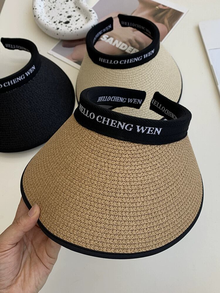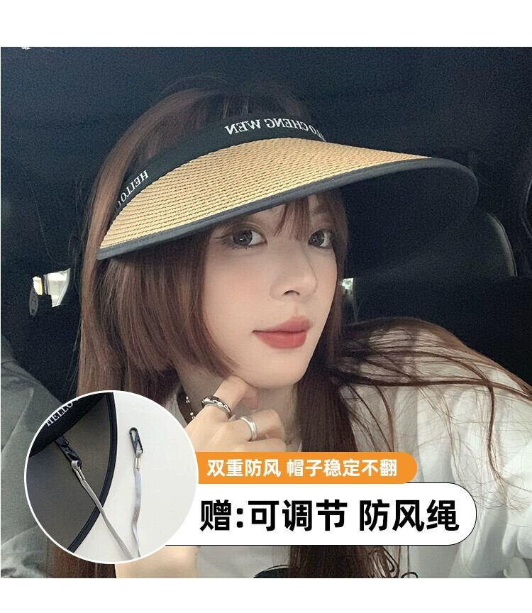 日焼け止め帽子女性の夏の UV 保護大きなひさし空のトップ麦わら帽子屋外サイクリング日よけ帽子レターヘッドバンド太陽 サマー 夏物 ヘアバンド ヘアアクセサリー 15dd25605736105