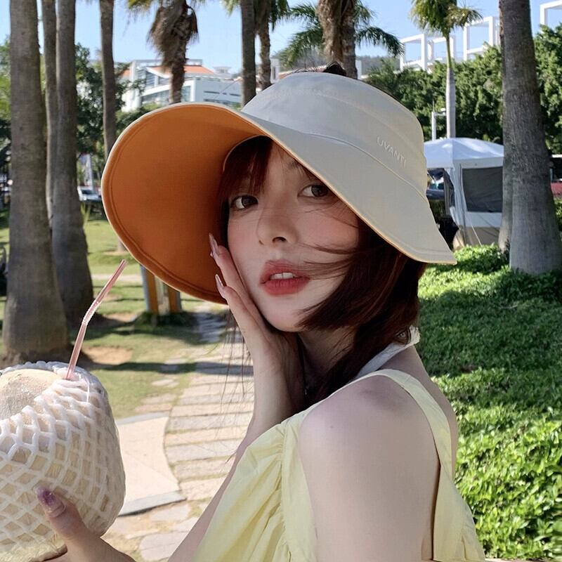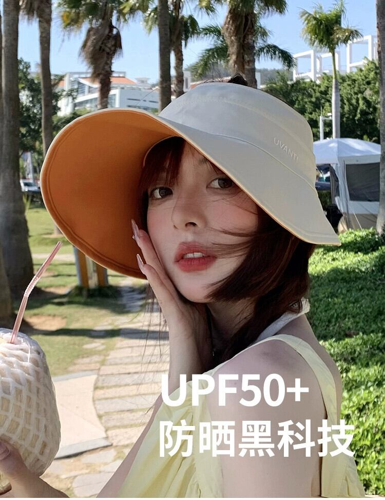 両面大きなひさし空のトップハットサンハット女性の夏の抗UVサンハットトップ通気性サンハットなし 帽子 サマー 夏物 15dd72945998942