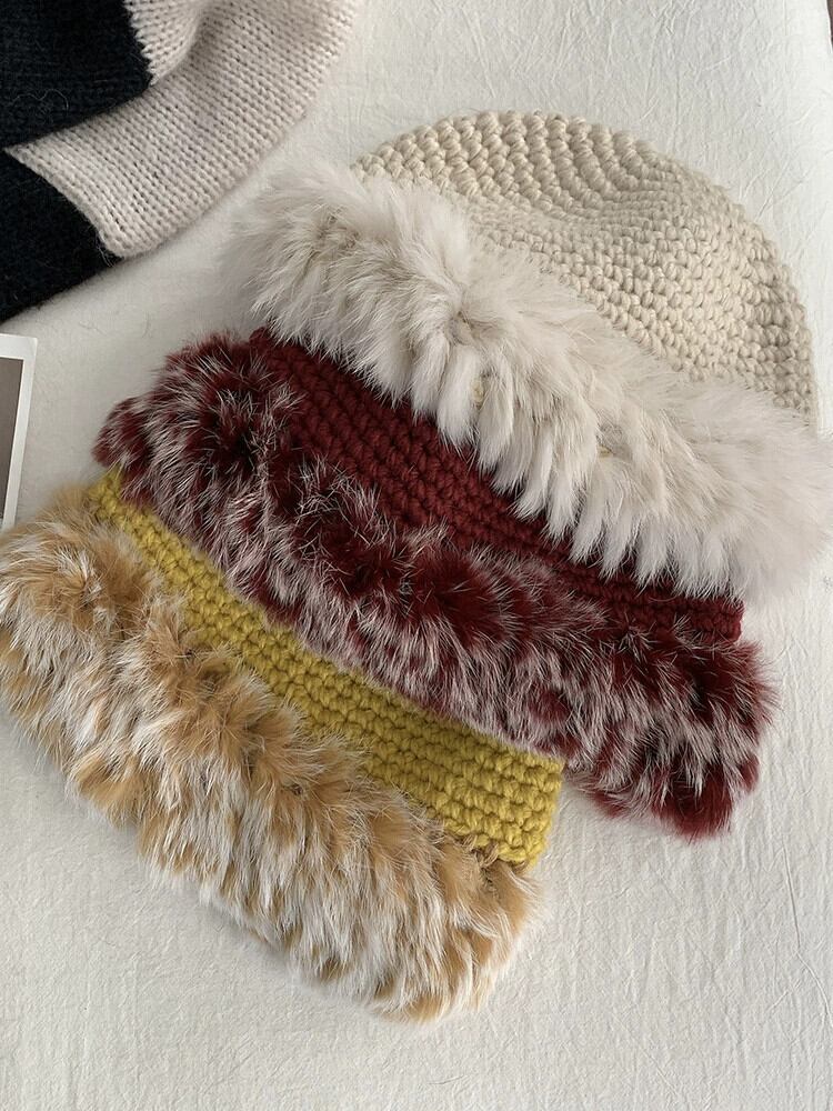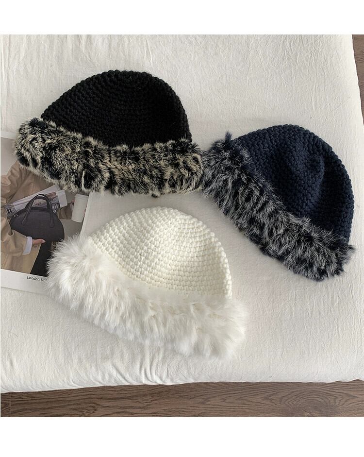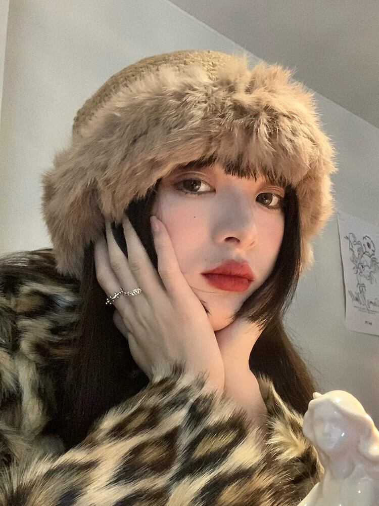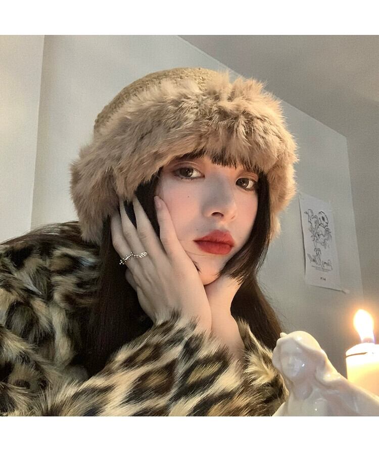 ウール帽子女性の ese オールマッチショーフェイス小さな冬肥厚暖かい耳保護ウサギの毛皮の大きな頭囲ニット漁師帽子 ウィンター 冬物 15dd3087357758
