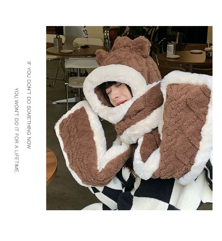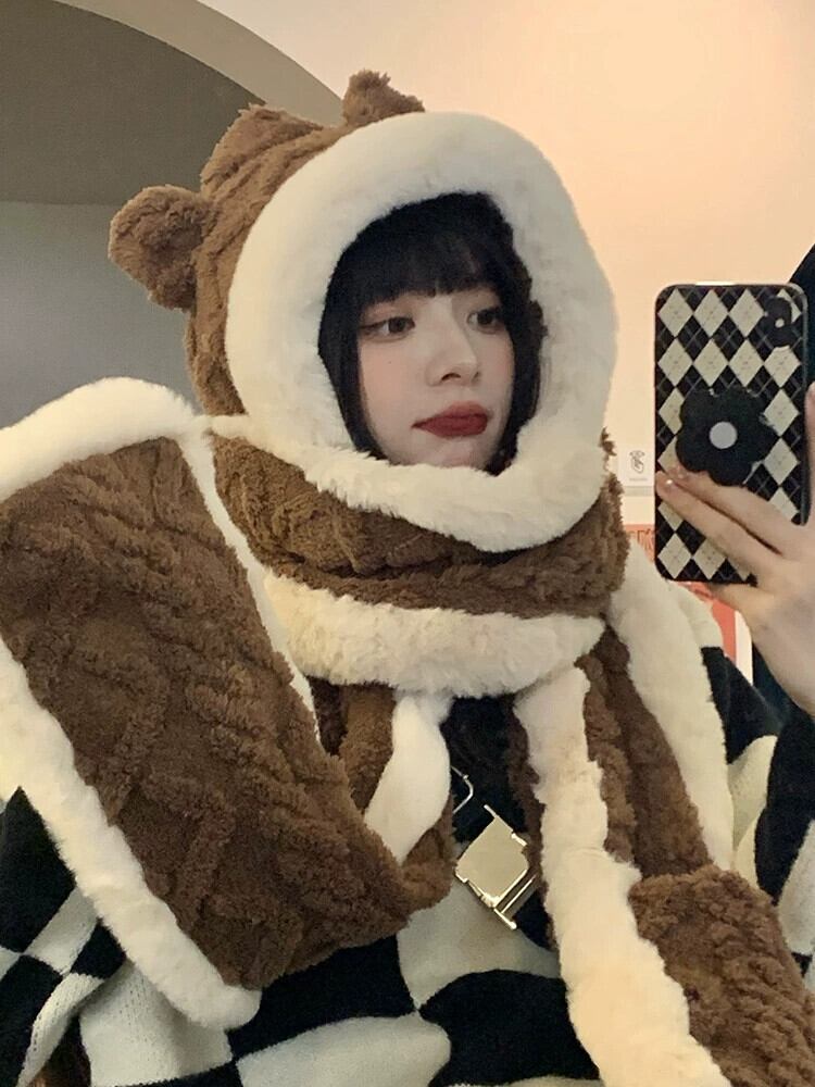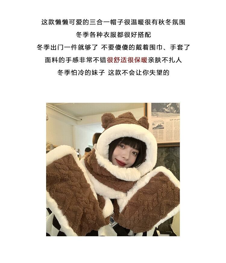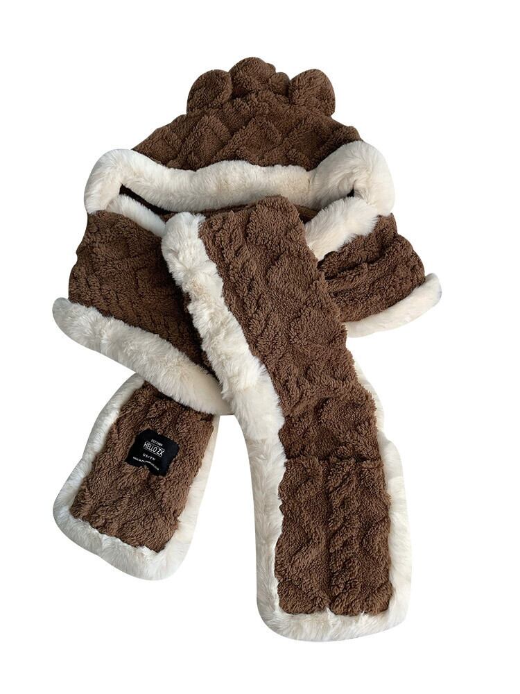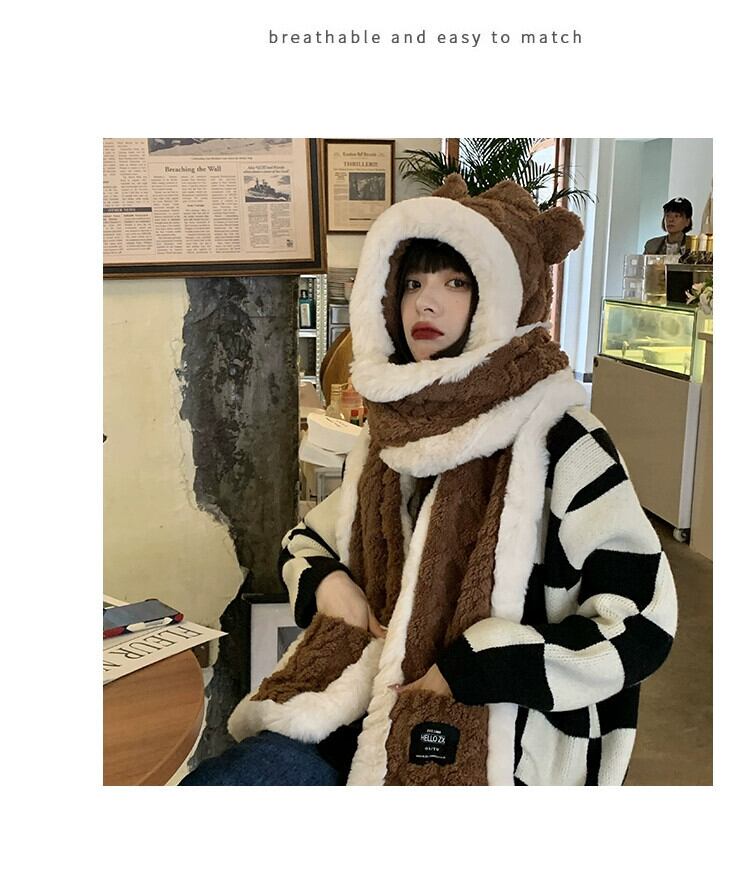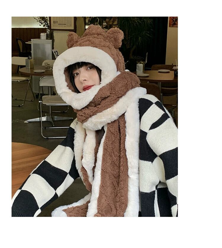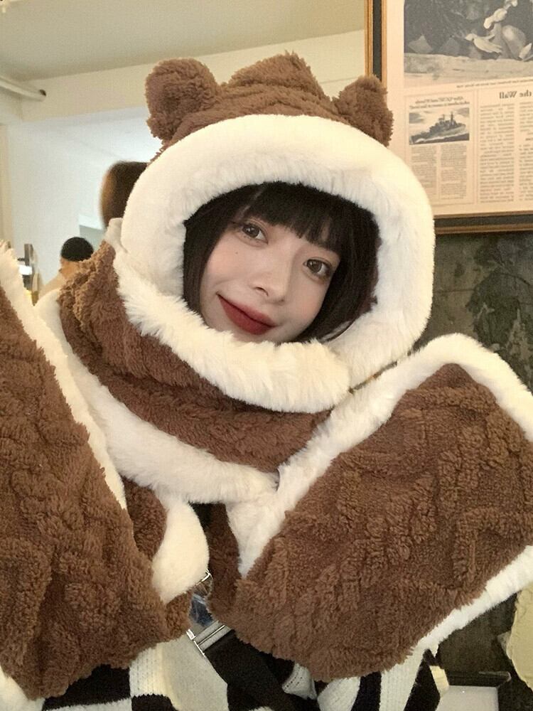 クマの耳帽子スカーフ 1 つの女性の冬バージョンかわいい厚く暖かい豪華なスカーフ手袋トレンディな 大人ガーリー スウィート キュート カジュアル ウィンター 冬物 15dd89993729583